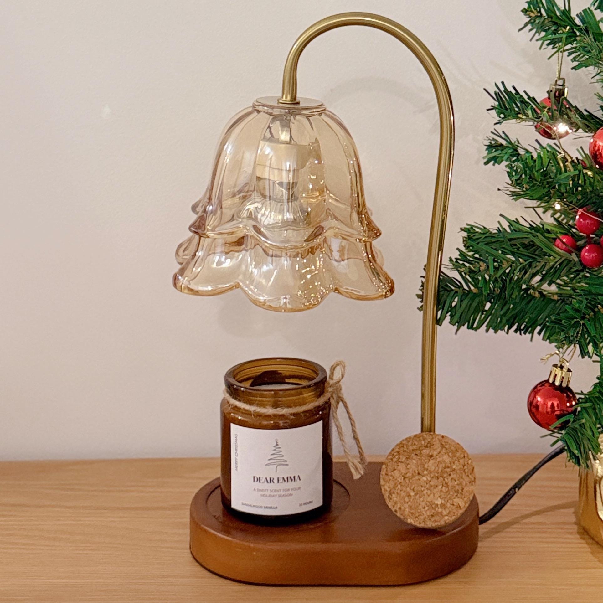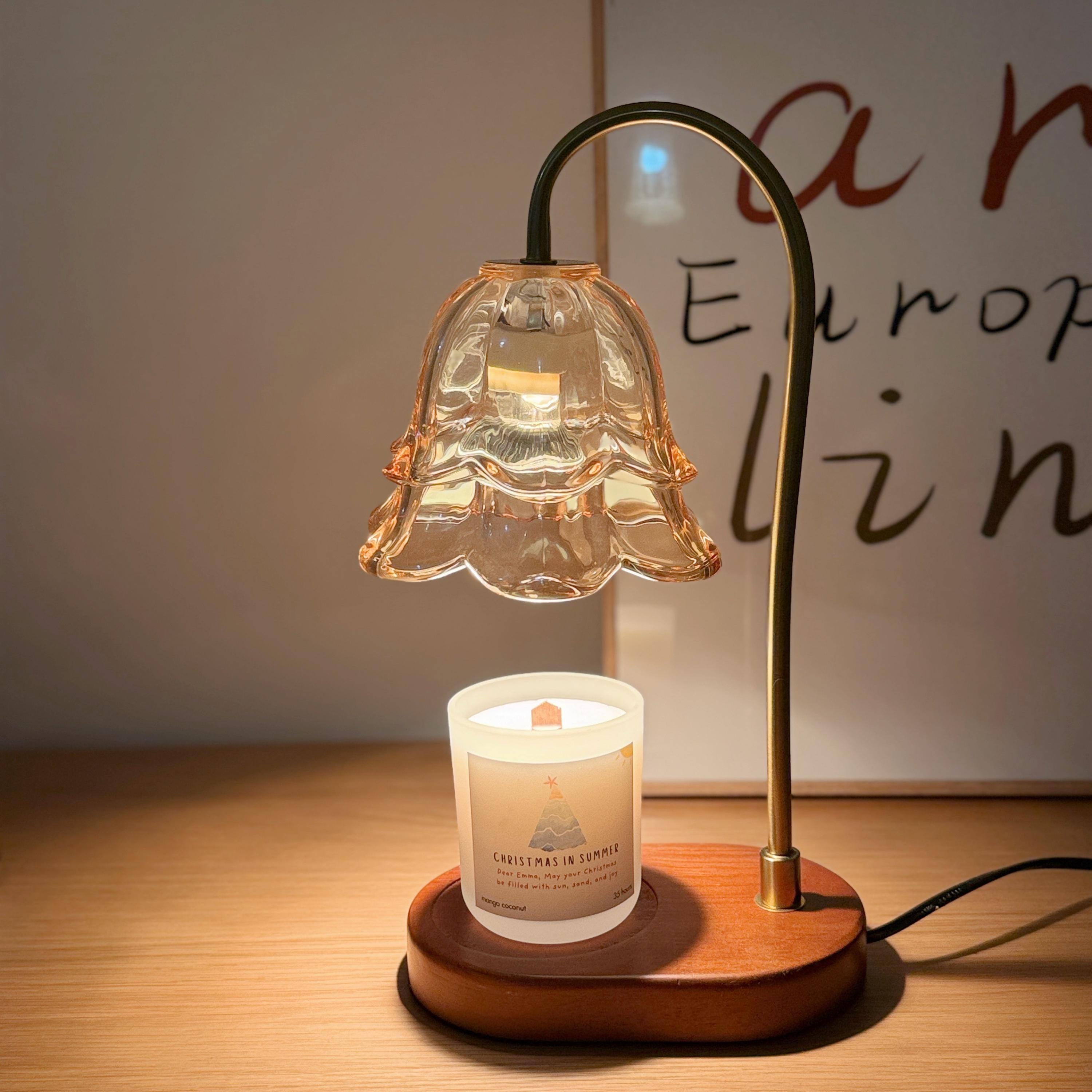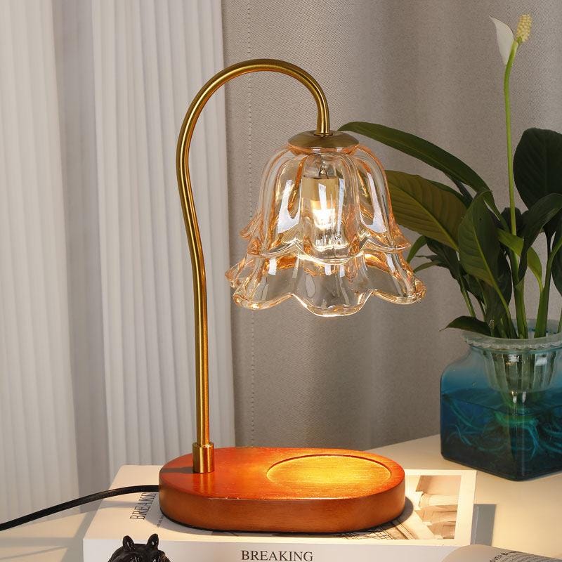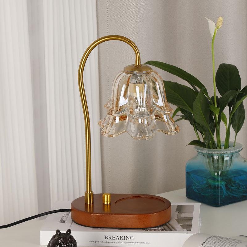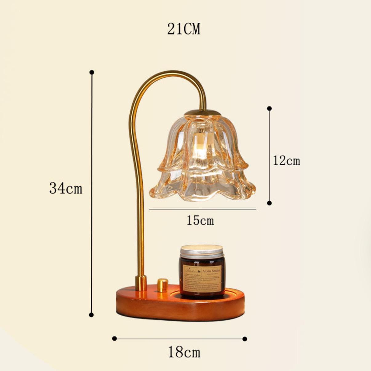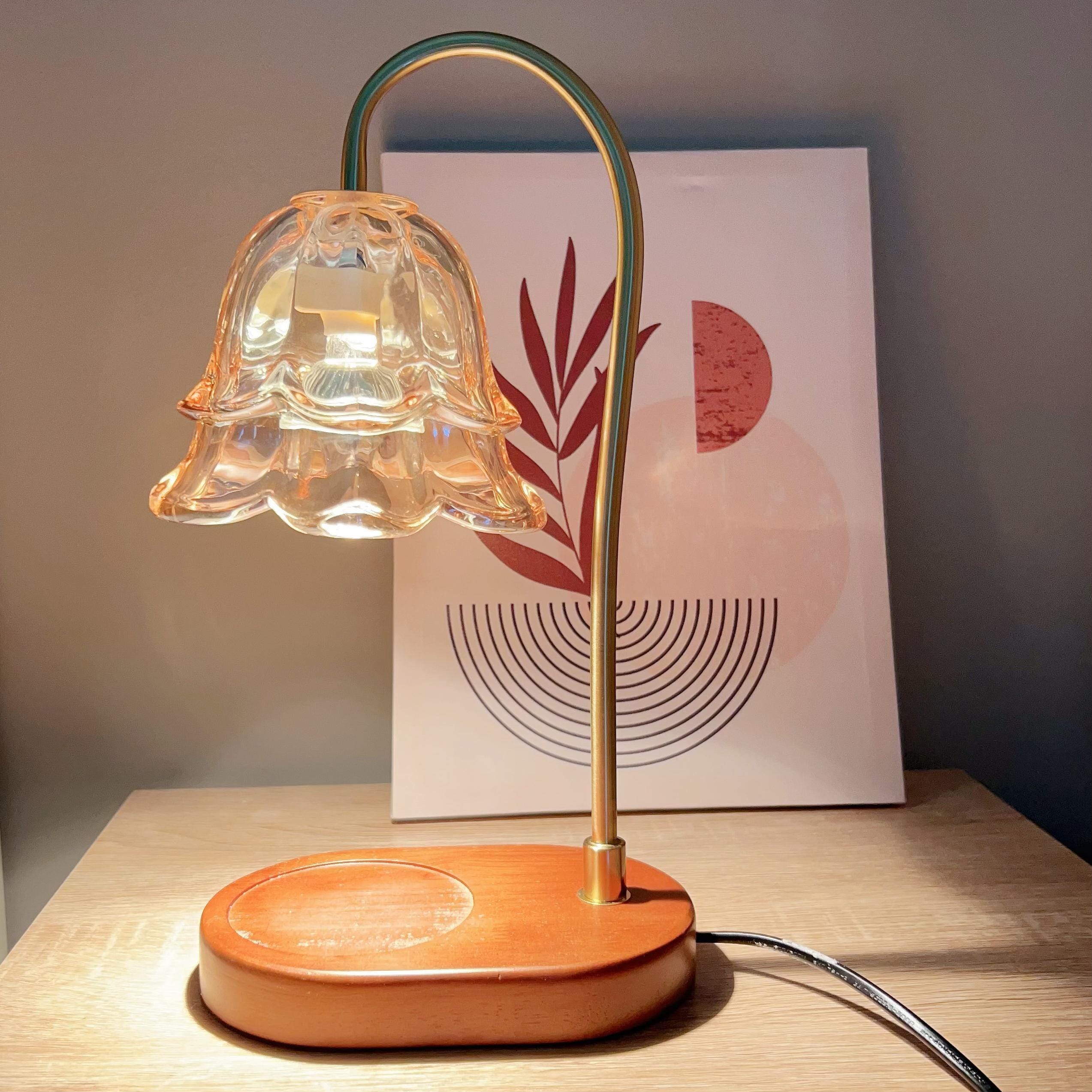 Lámpara de cera floral / Base de madera de nogal / Brillo ajustable