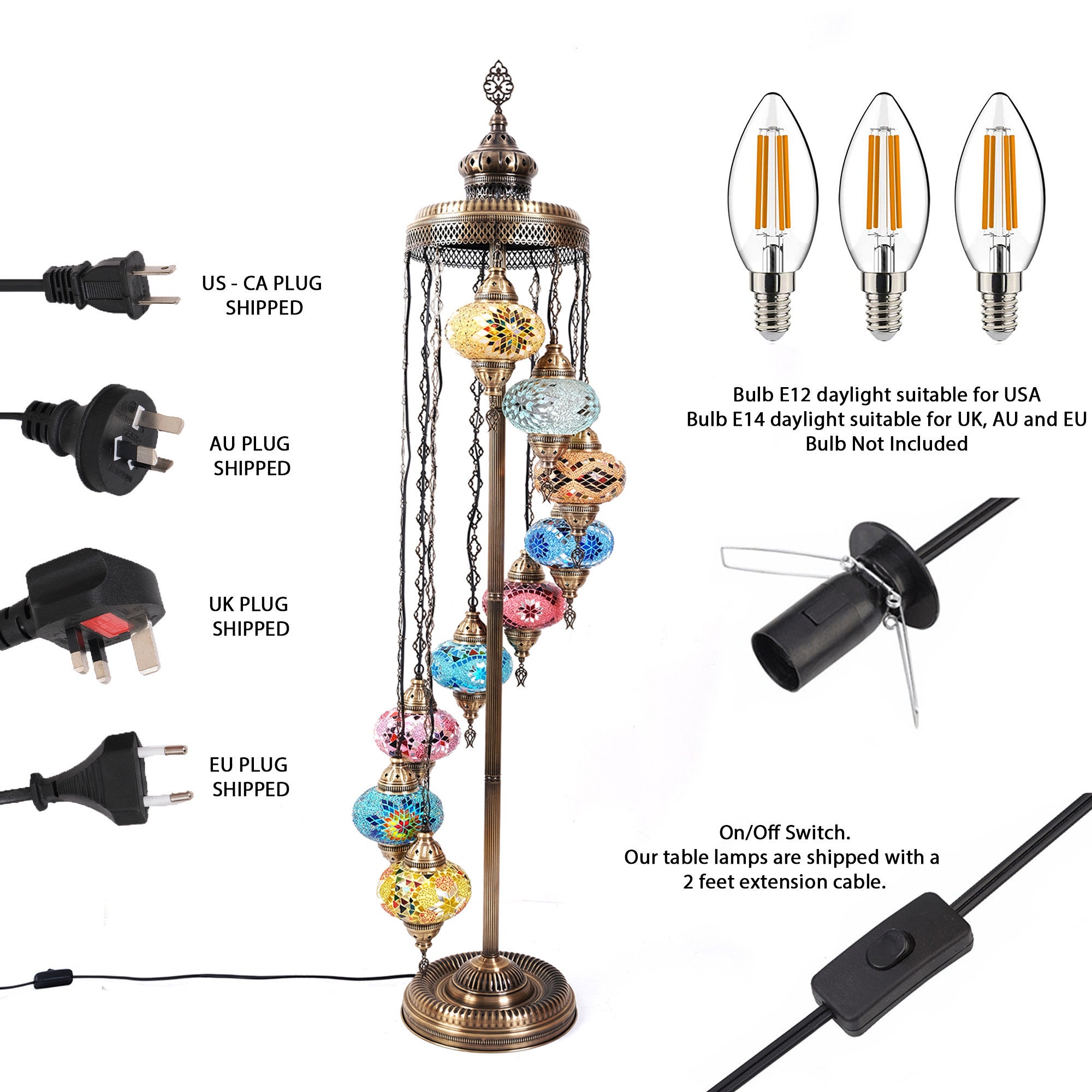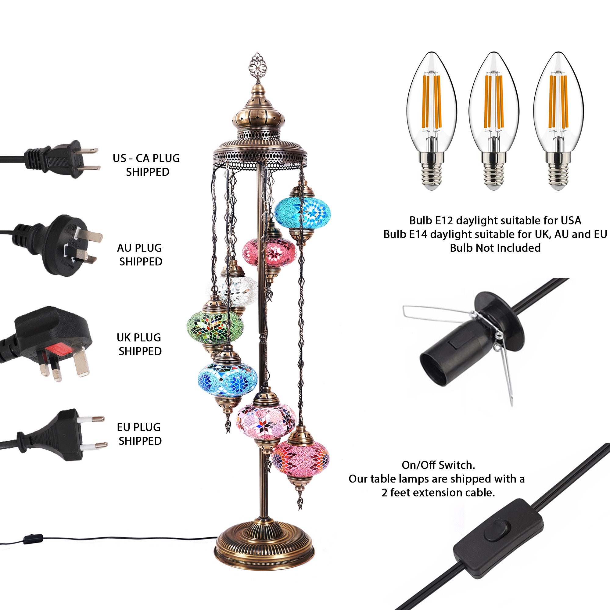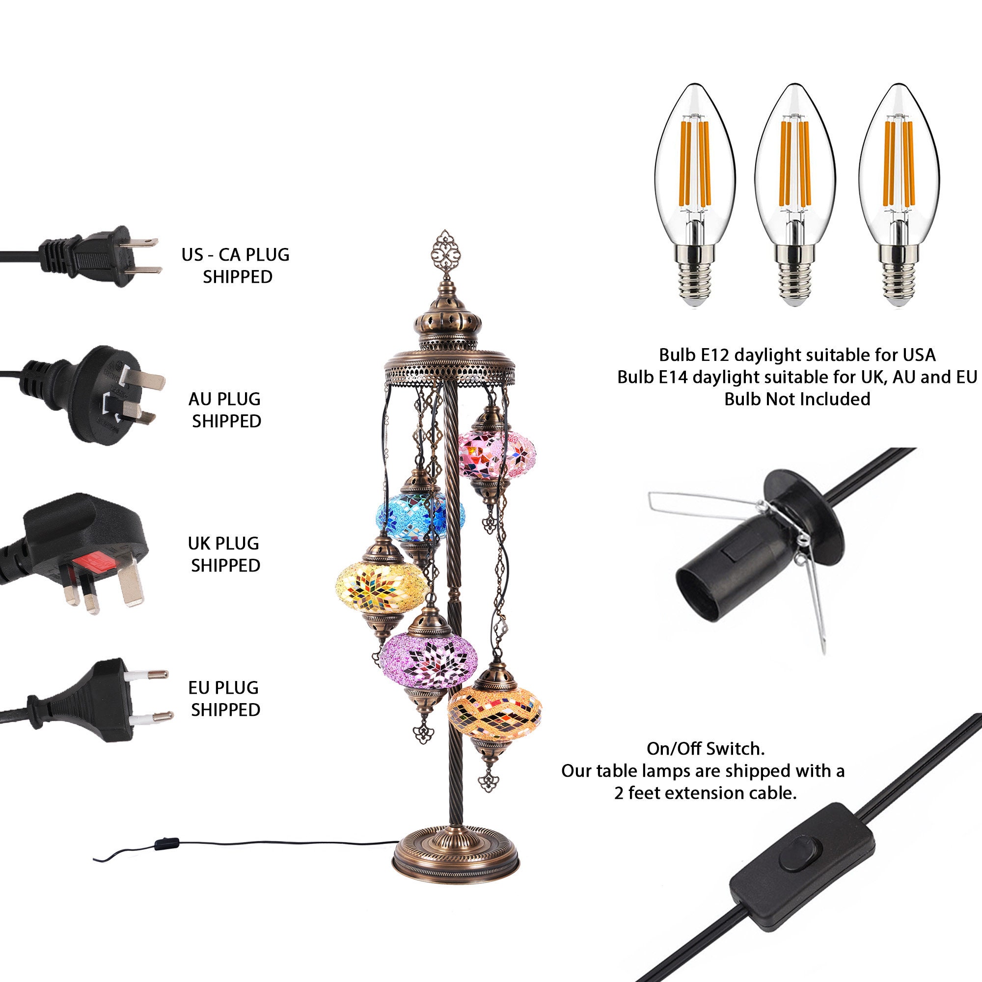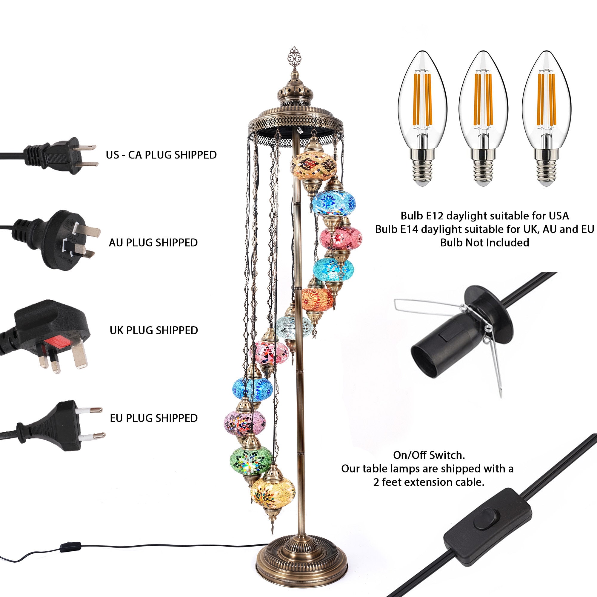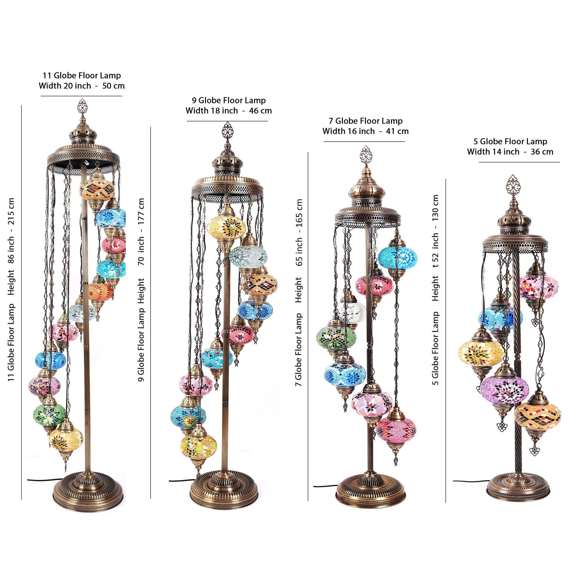 Handmade Turkish Mosaic Floor Lamp, Customizable Globe Lighting, 4 Different Models of Indoor Lighting