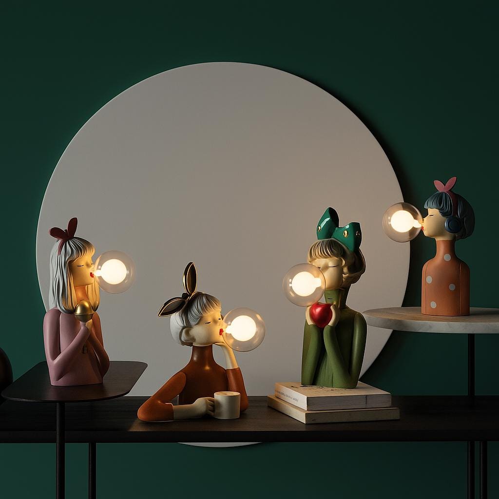Lámpara Bubble Girl hecha a mano: Lámpara de mesa moderna de resina