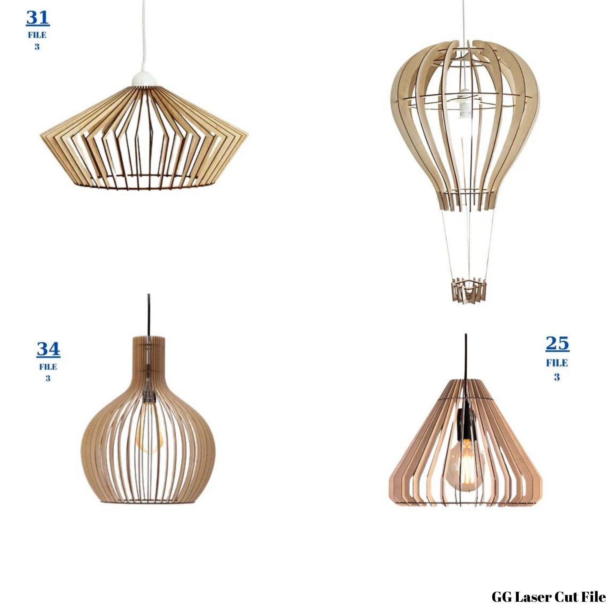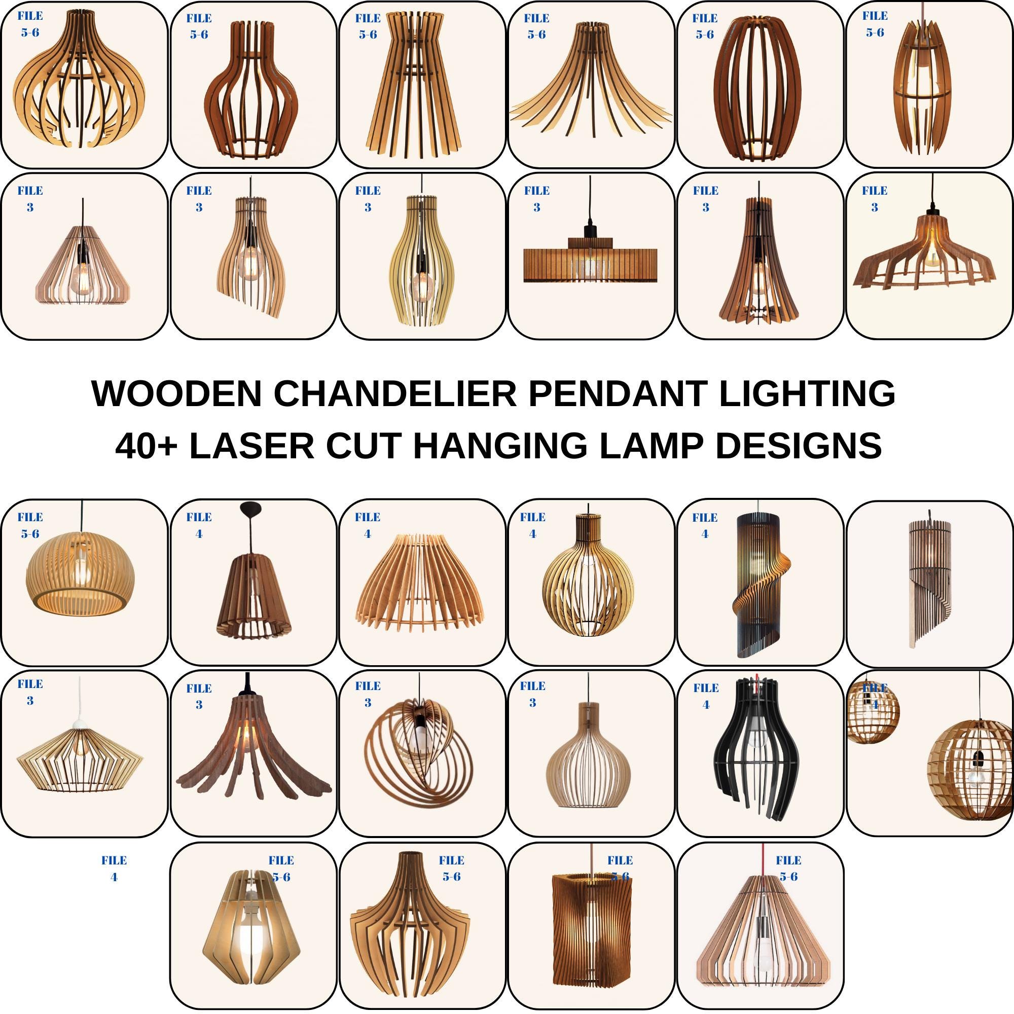 Lámpara Colgante de Madera - Diseño Láser - 40+ Patrones de Lámparas 3-4-5 mm (5 mm 13/4 mm 12/3 mm 14-Dimensiones)