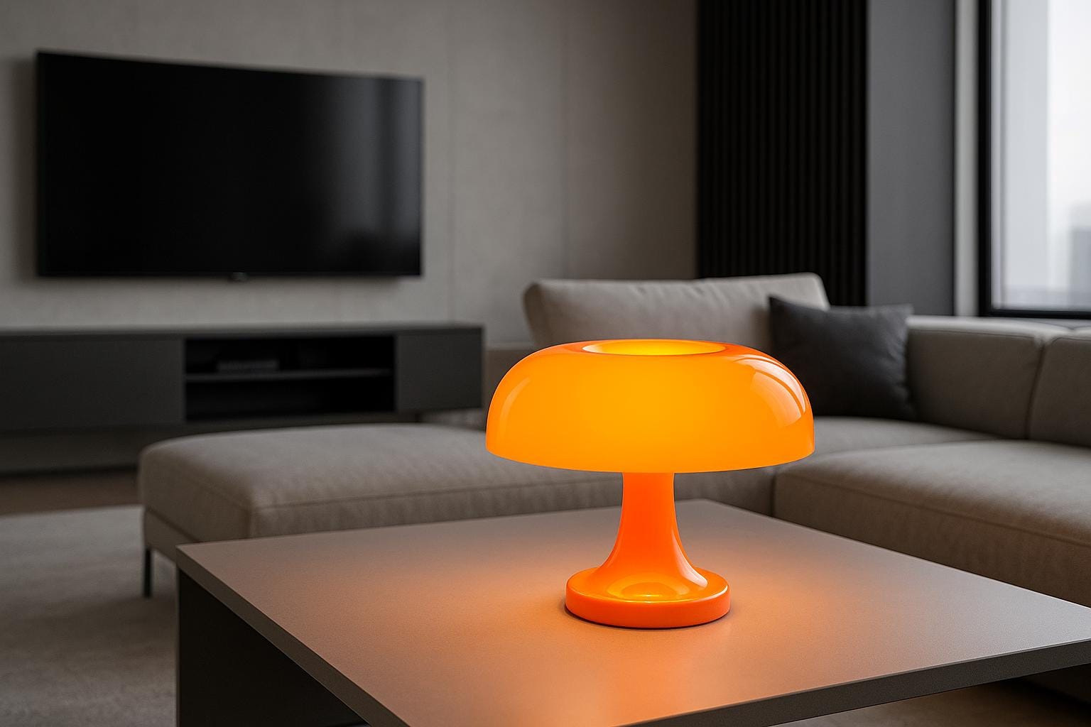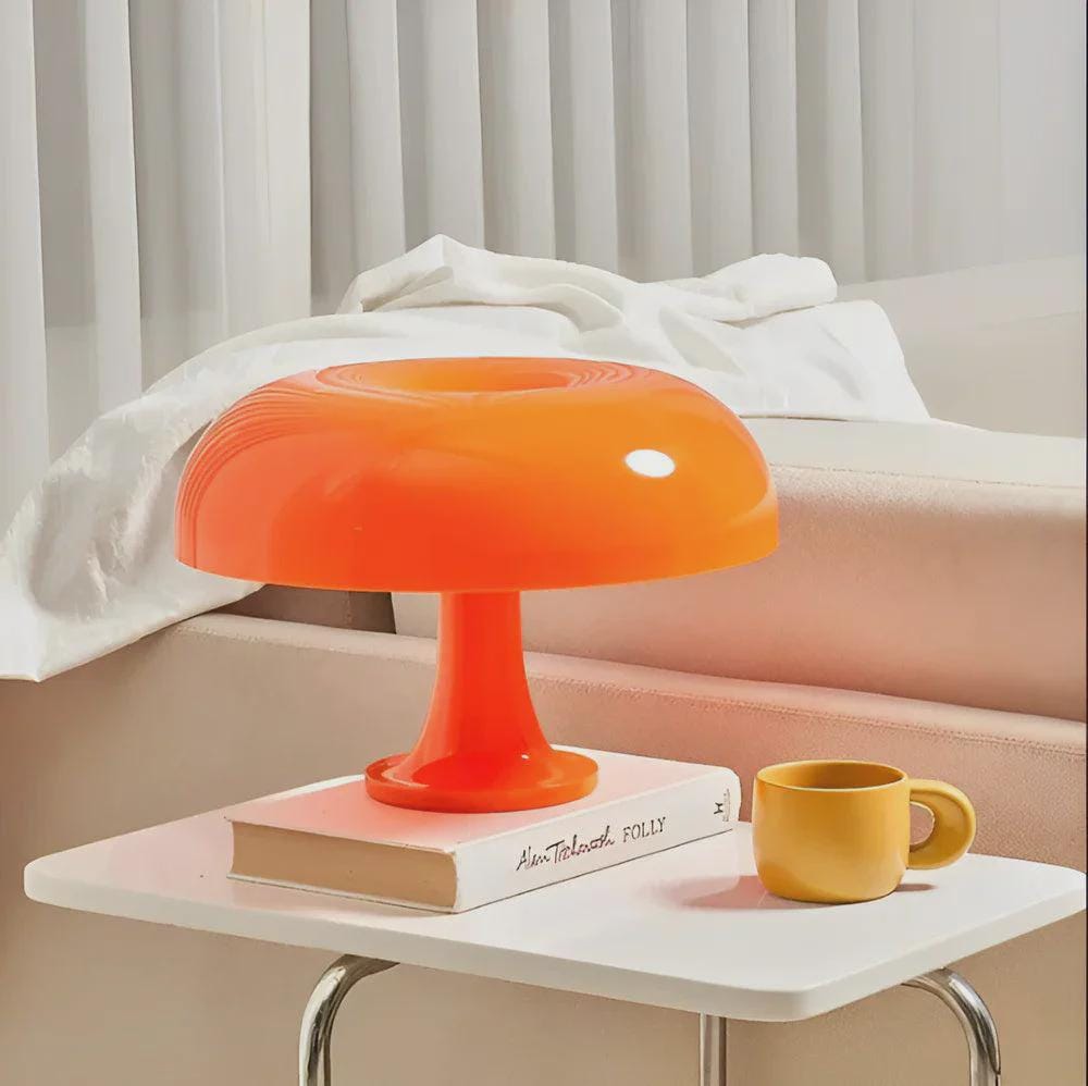 Lámpara danesa vintage con forma de hongo: lámpara de noche retro naranja, estilo moderno de mediados de siglo.