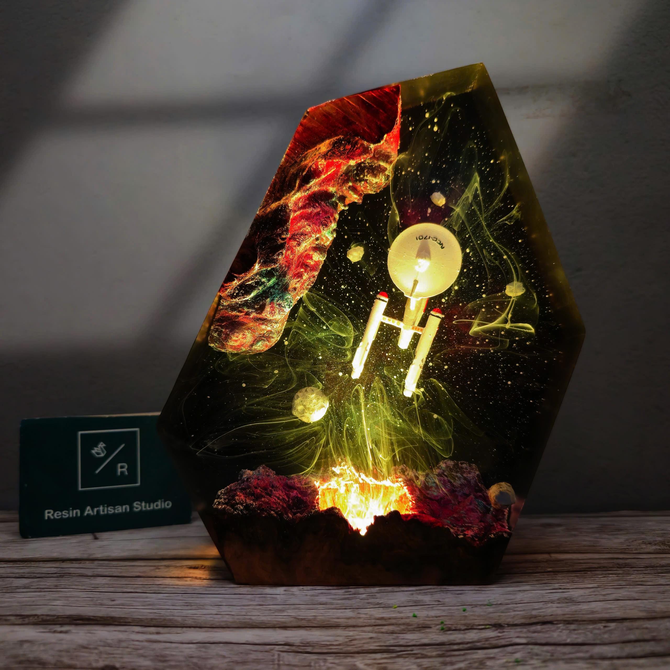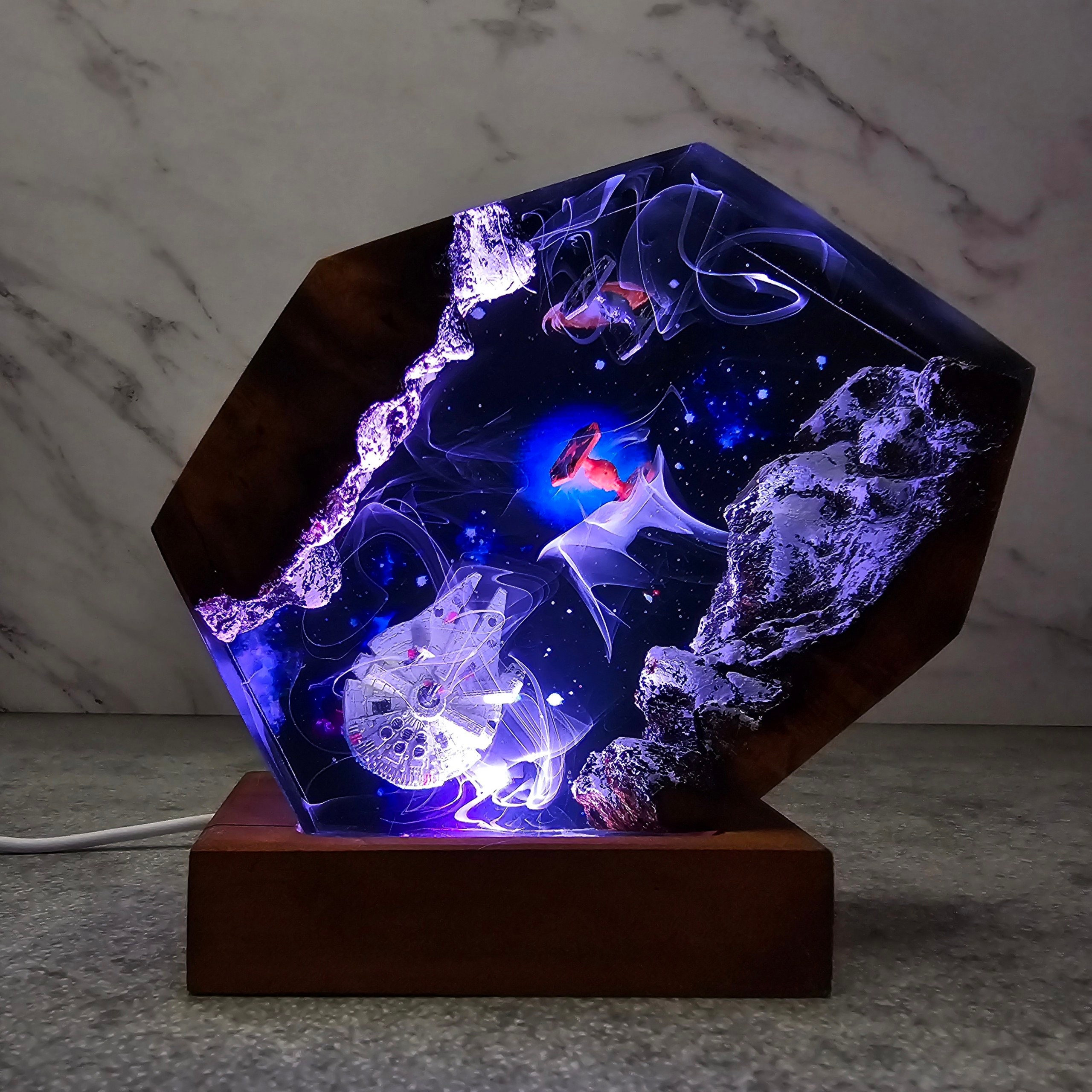 Adquiere tu Lámpara de galaxia espacial de resina y madera, luces nocturnas espaciales, lámpara de noche epoxi para naves espaciales, lámpara de resina interestelar, regalo de Navidad, lámpara en Stock. Disponible para envío inmediato. Envío a todo México. Recibe en 5-7 días hábiles. Compra 100% segura y garantizada.