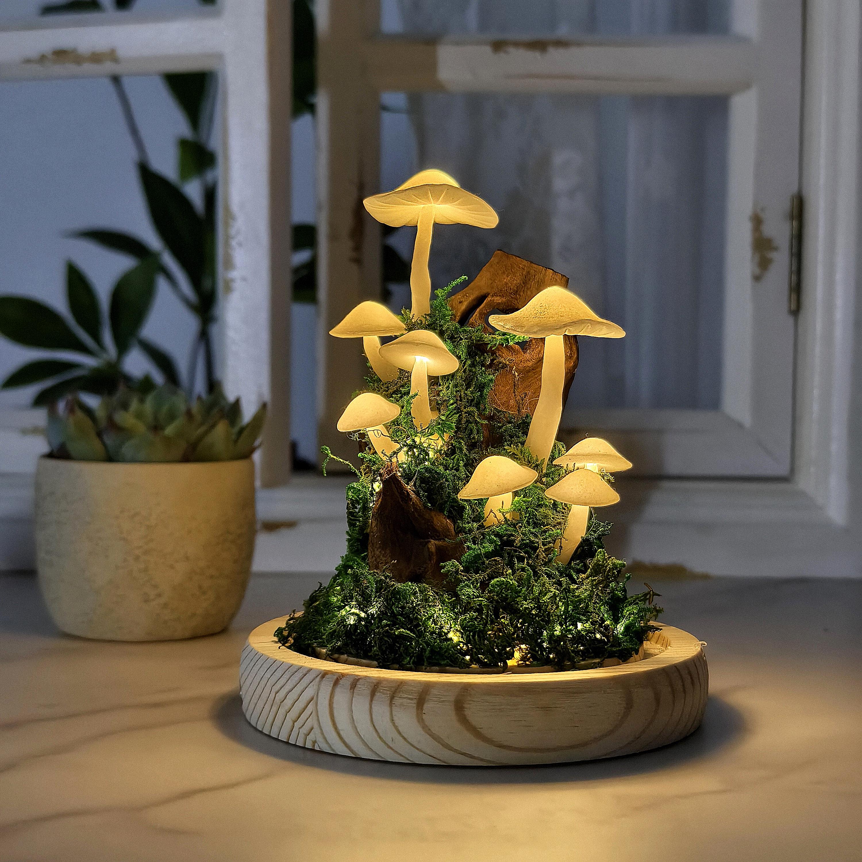 Lámpara de hongo blanca hecha a mano / Regalo de decoración de hadas / Decoración de dormitorio / Decoración caprichosa / Lámpara Art Déco