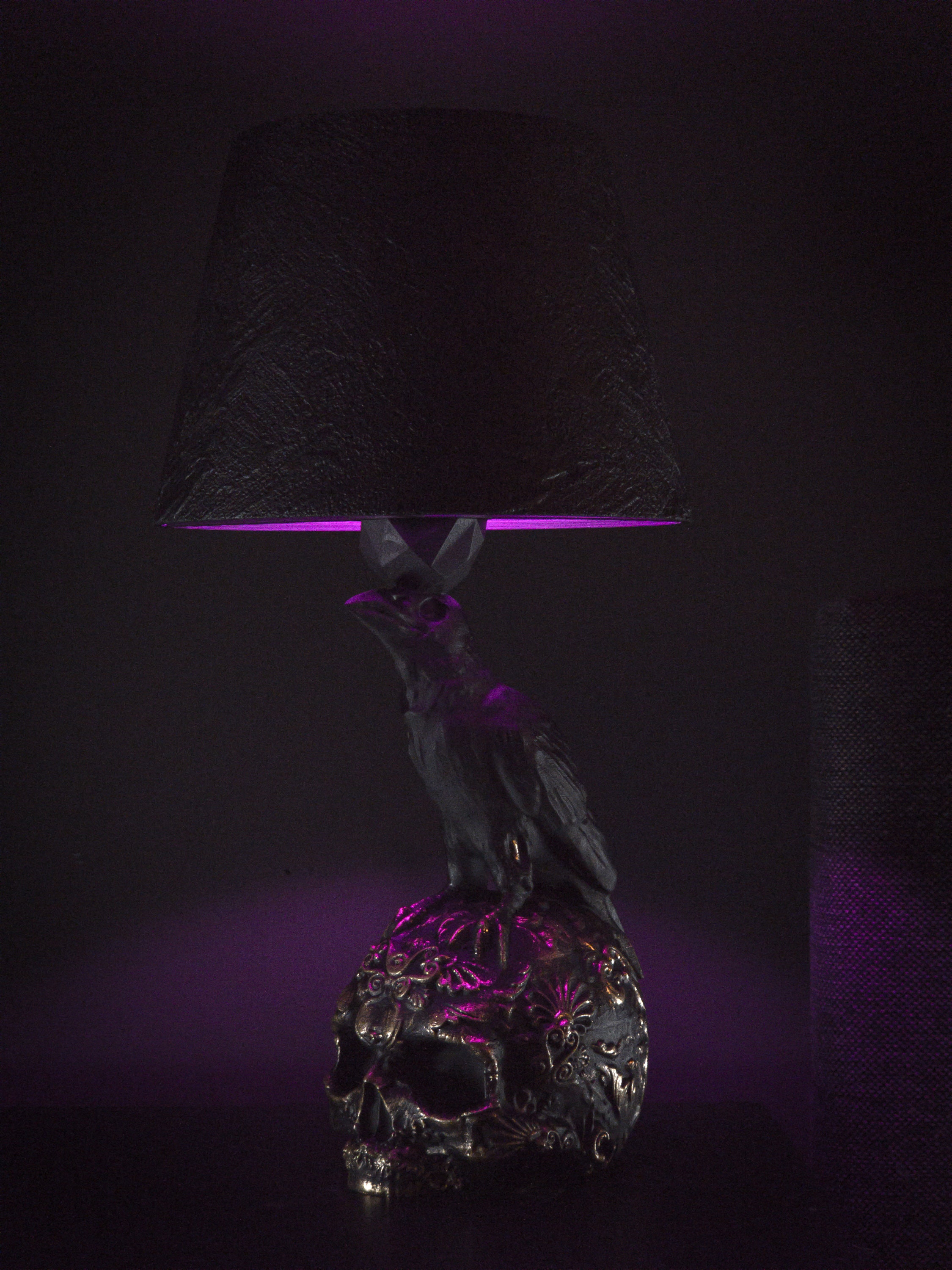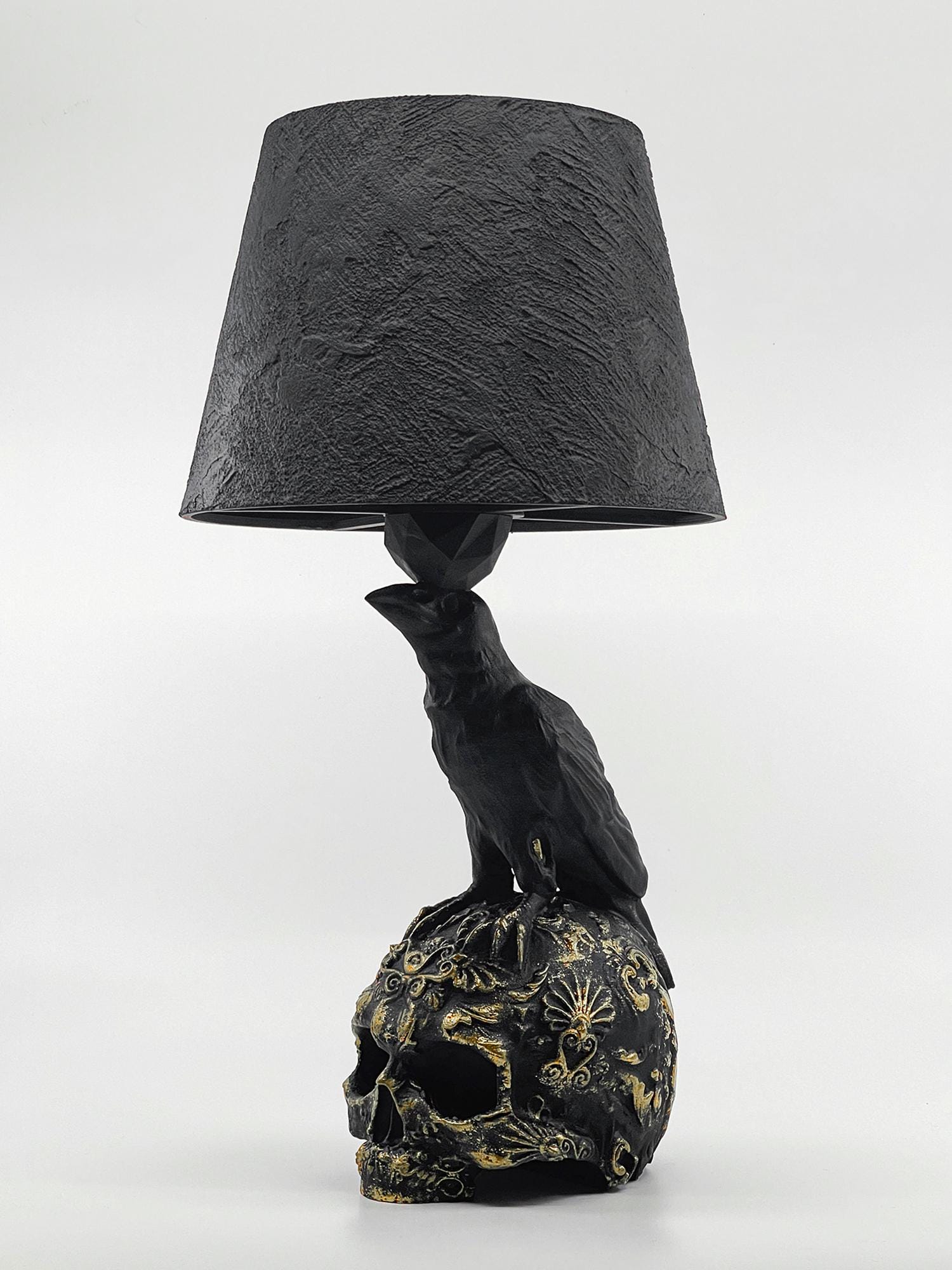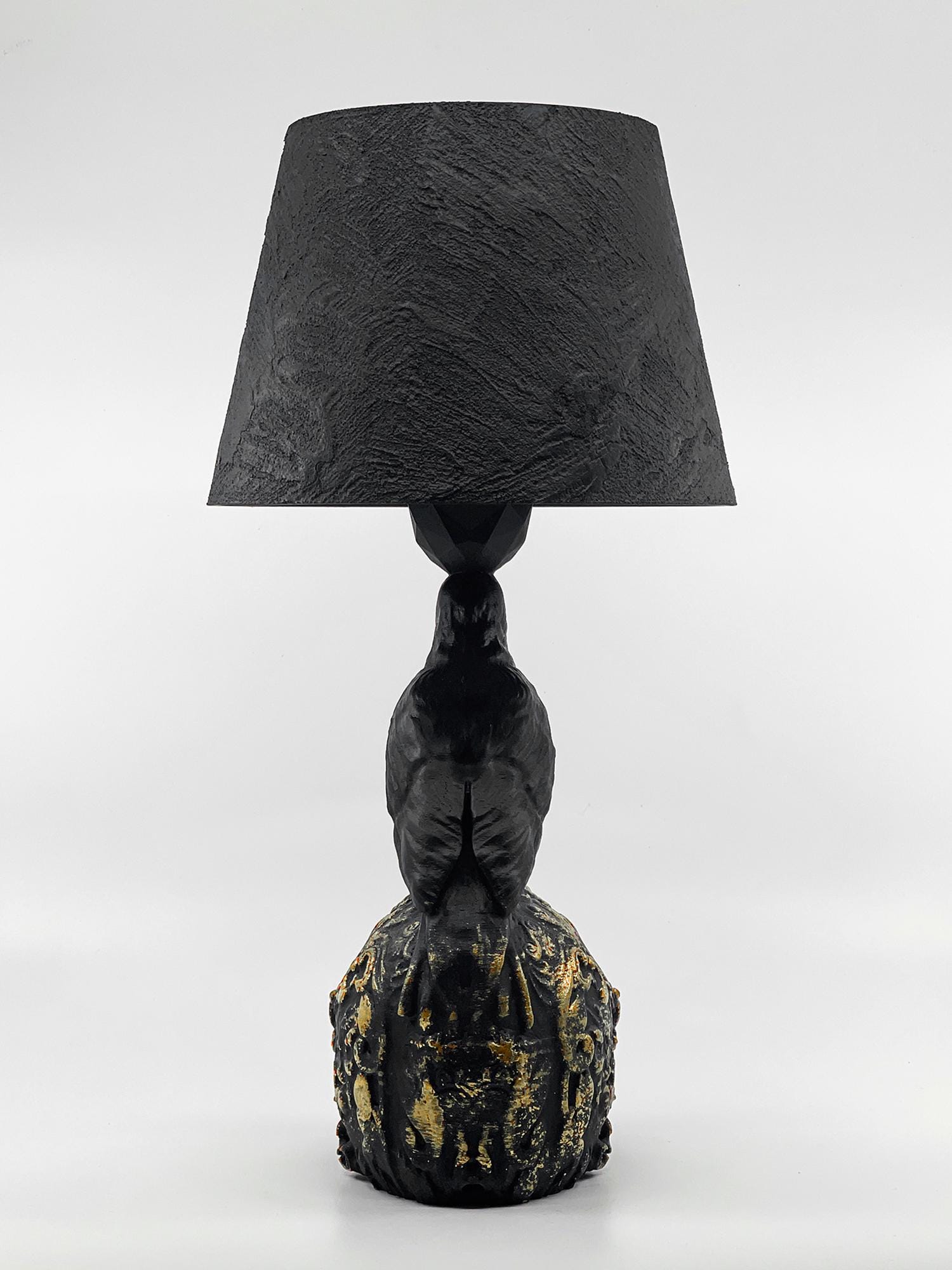 Lámpara de mesa con forma de cráneo de cuervo: acabado a mano – Elegante y evocadora percha de cuervo – Pieza decorativa gótica para el hogar