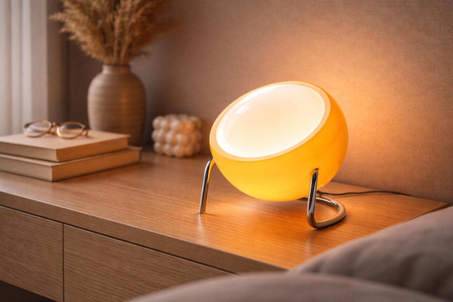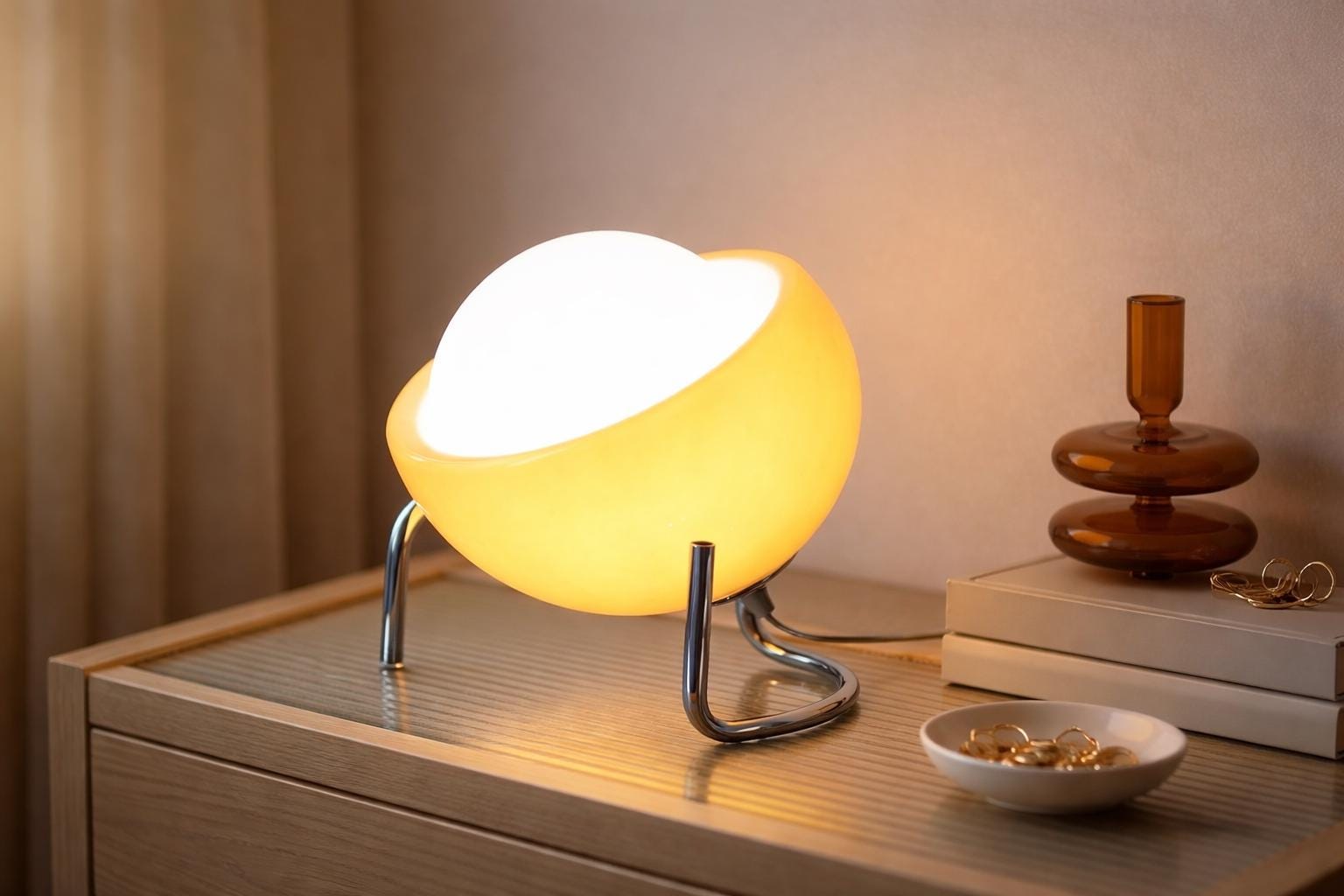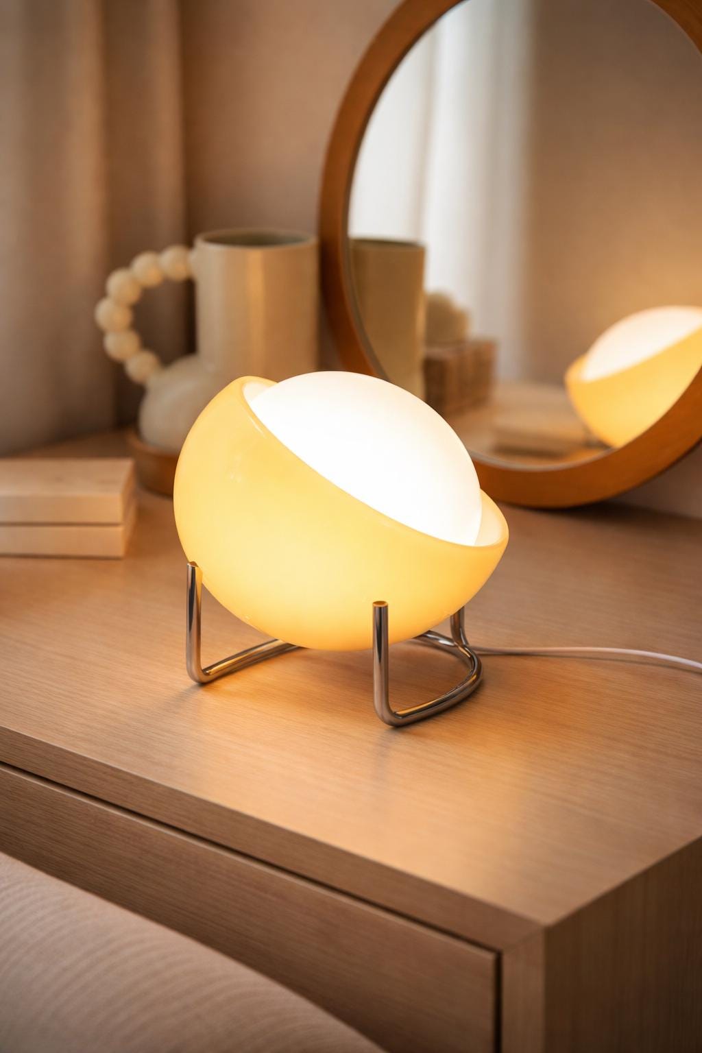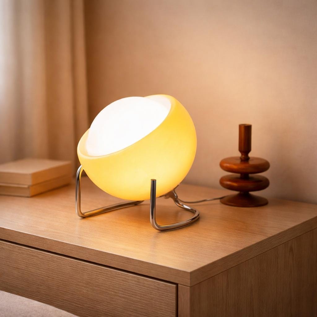 Lámpara de mesa con globo inspirada en la Bauhaus, lámpara de escritorio LED retro de cristal para interiores acogedores.