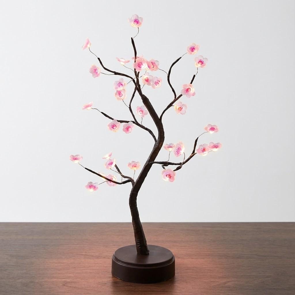 Lámpara de mesa con luz nocturna LED de bonsái con flor de cerezo, alimentada por USB o batería, con interruptor táctil