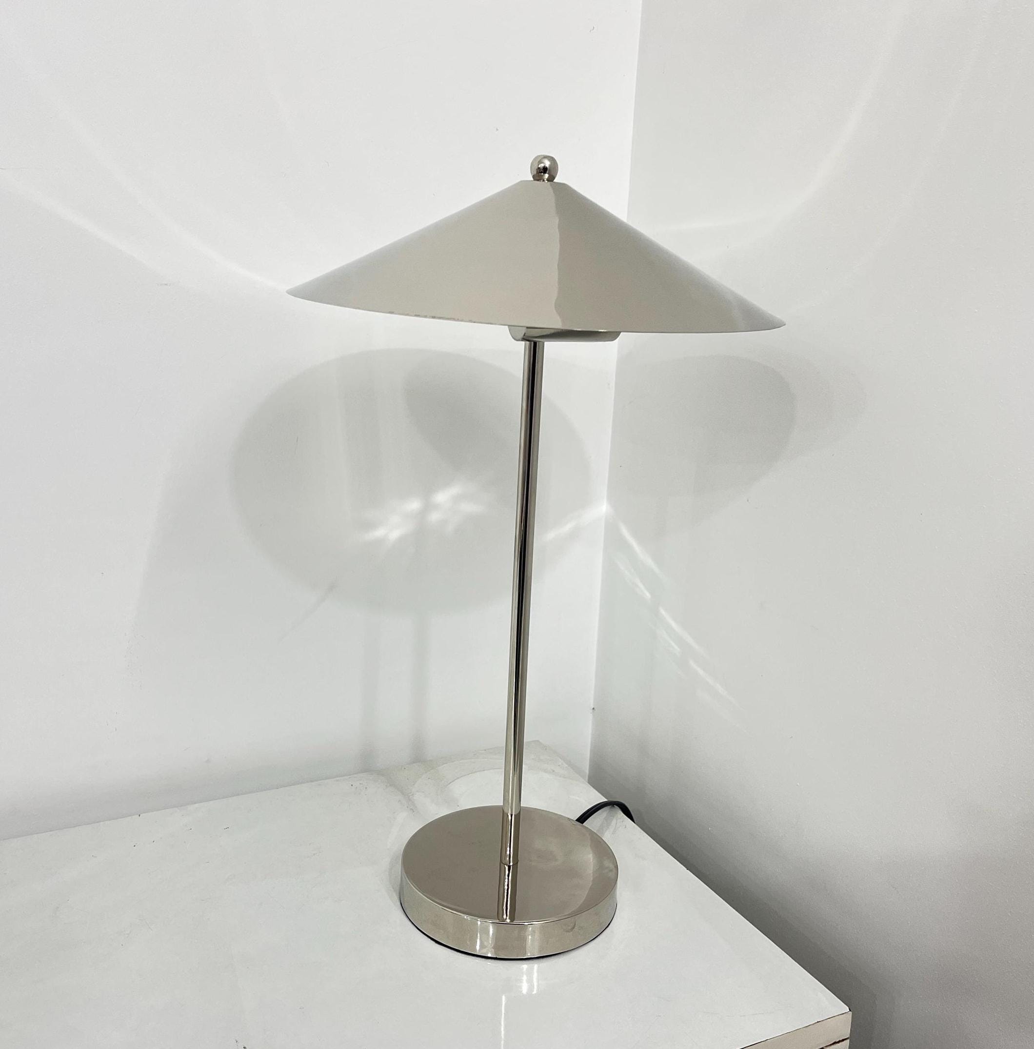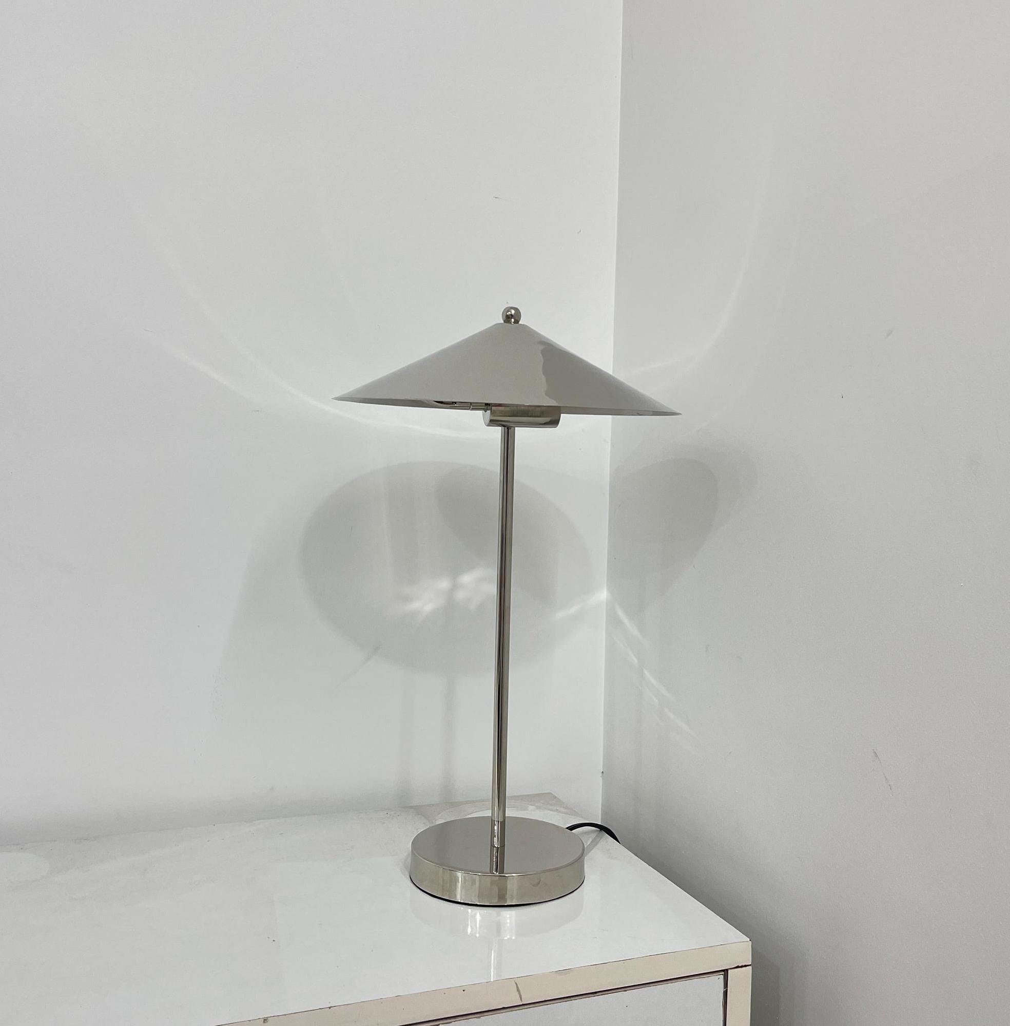 Lámpara de mesa italiana de mediados de siglo en cromo pulido: iluminación para dormitorios y oficinas