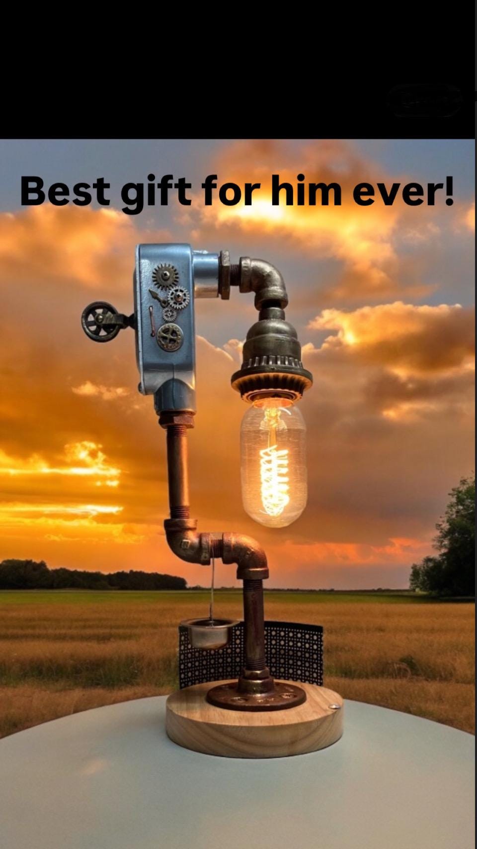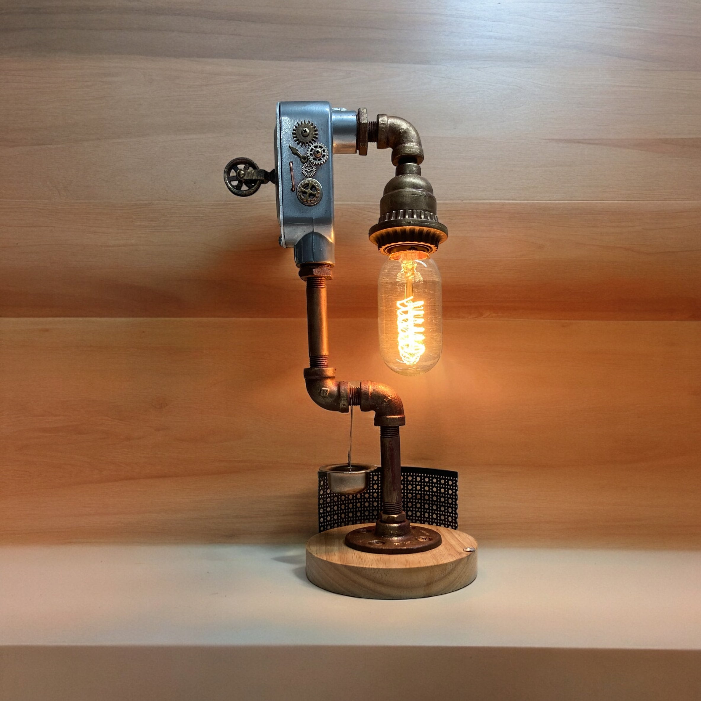 Lámpara de mesa steampunk hecha a mano: Decoración industrial con bombilla Edison