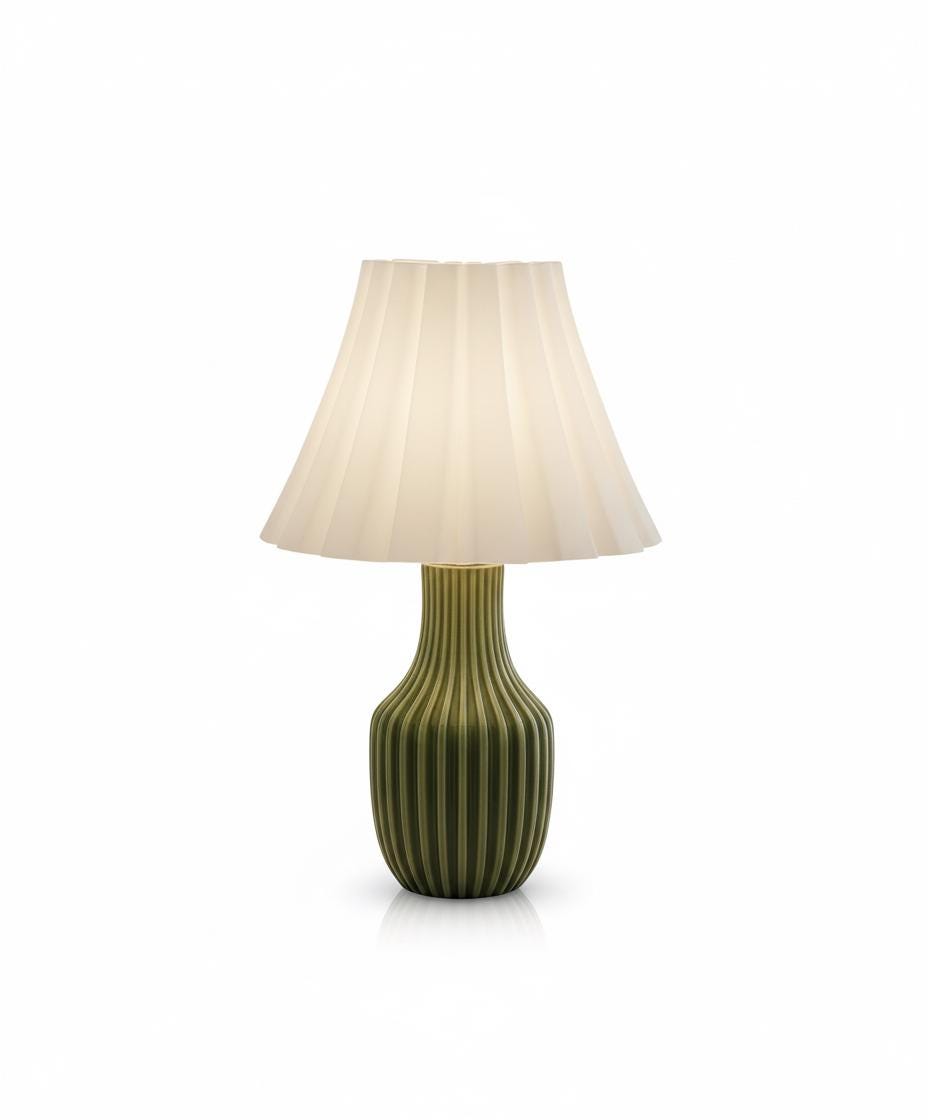 Adquiere tu Lámpara de mesa verde esmeralda: pantalla plisada, base acanalada - Moderna de mediados de siglo en Stock. Disponible para envío inmediato. Envío a todo México. Recibe en 5-7 días hábiles. Compra 100% segura y garantizada.