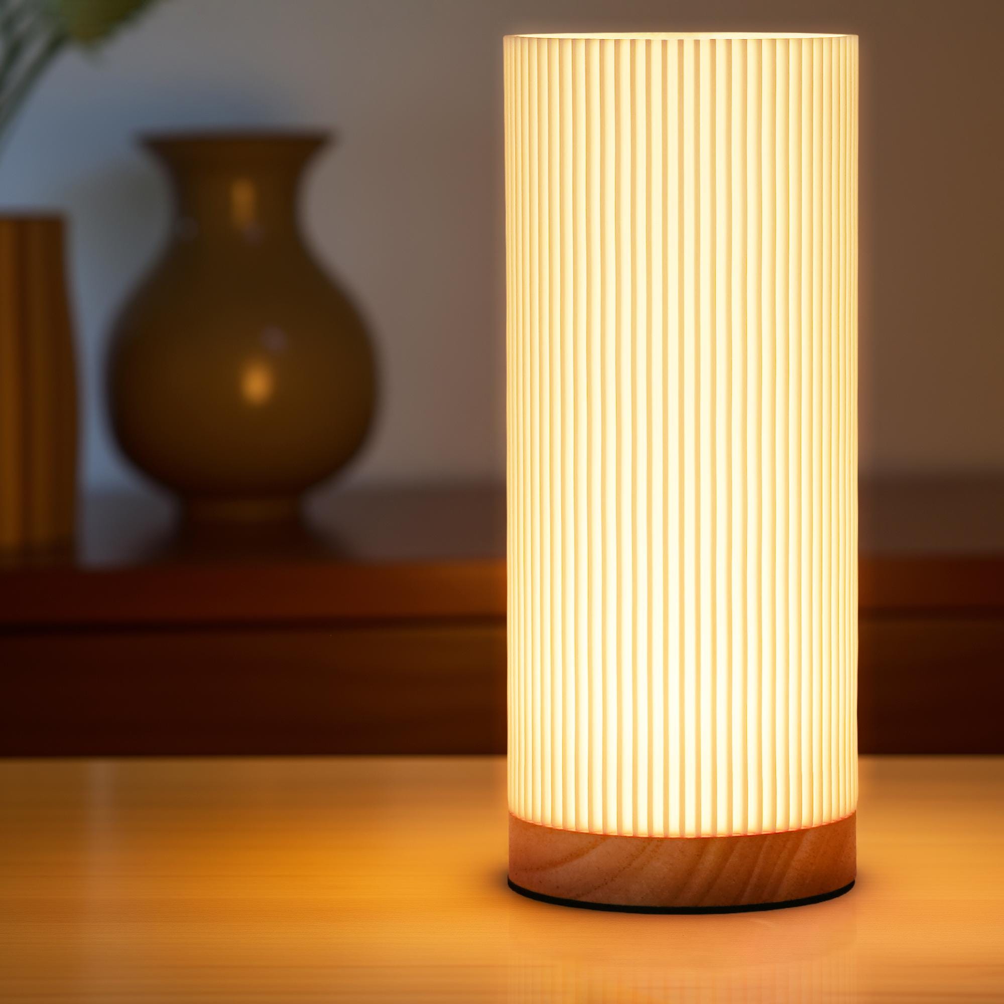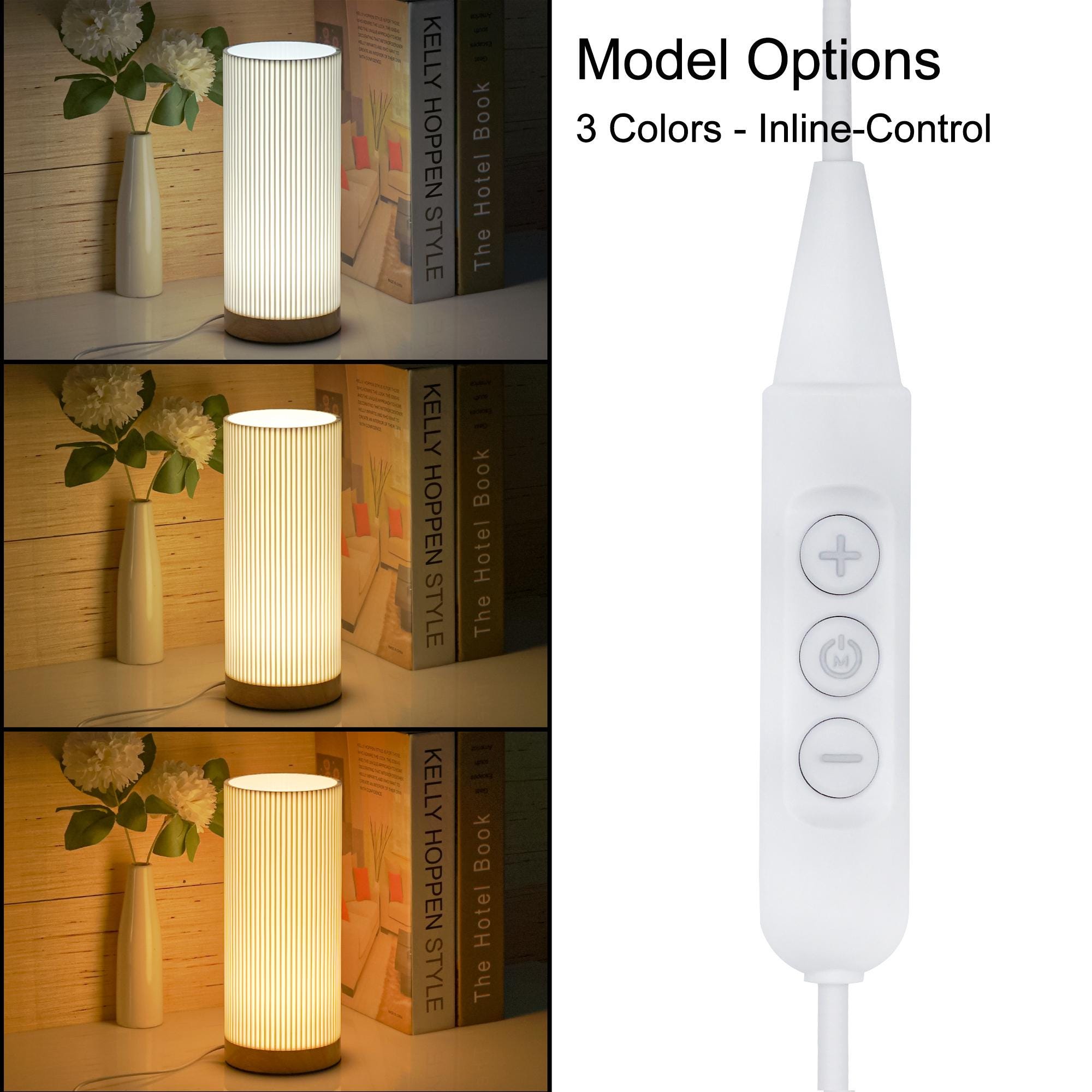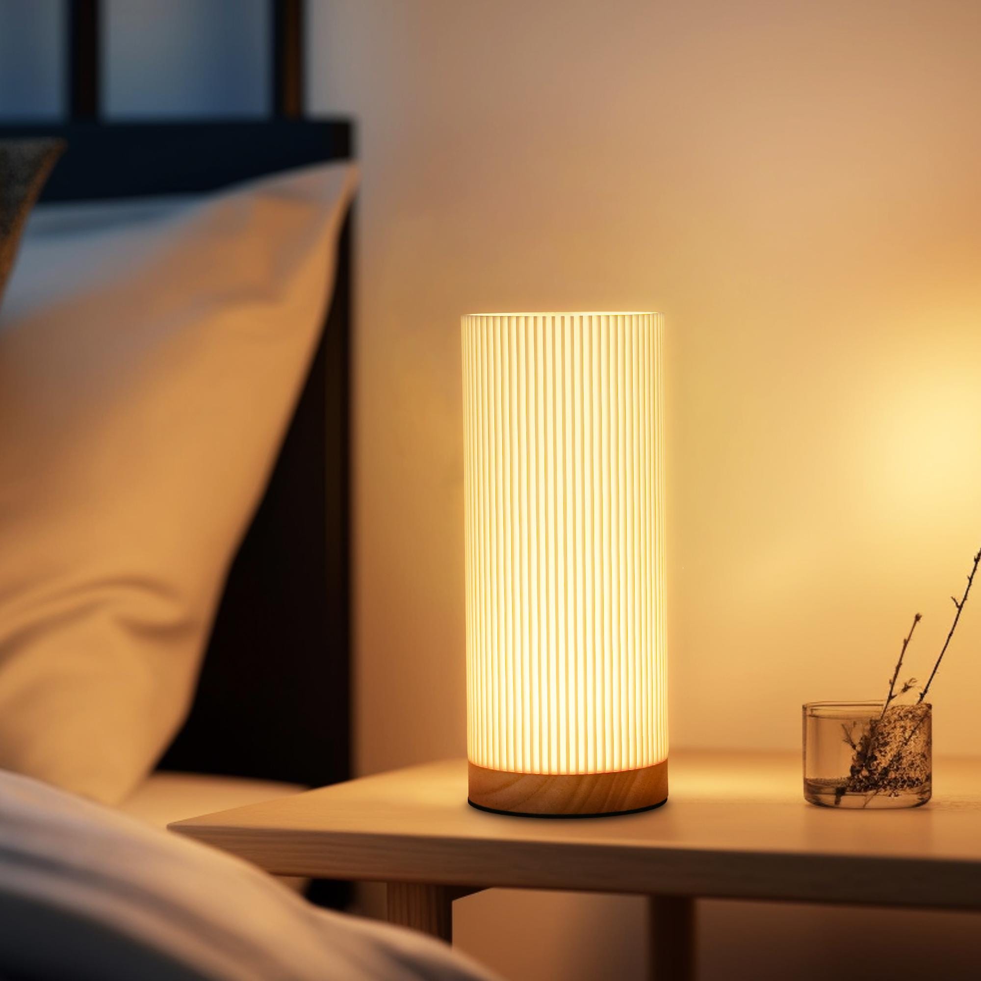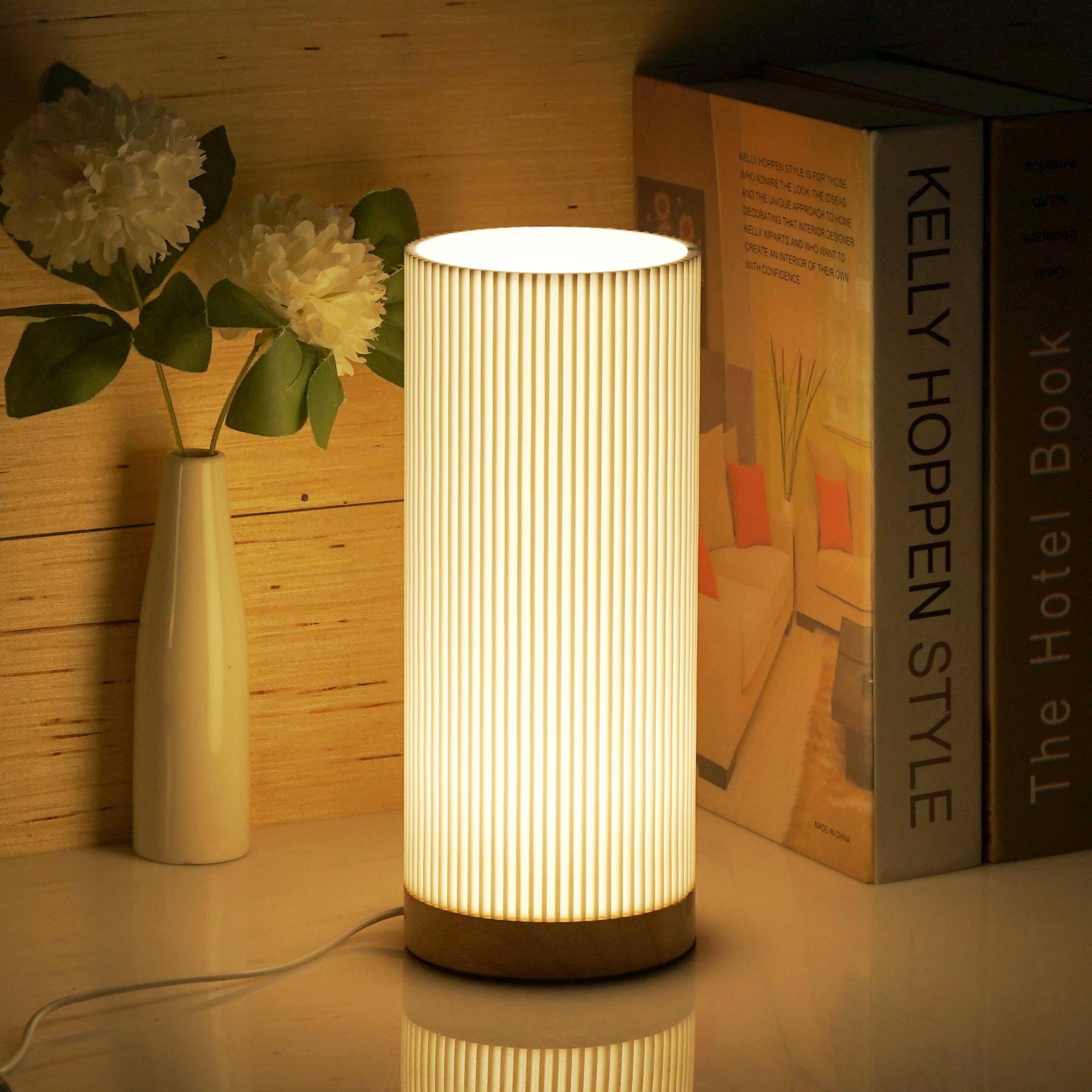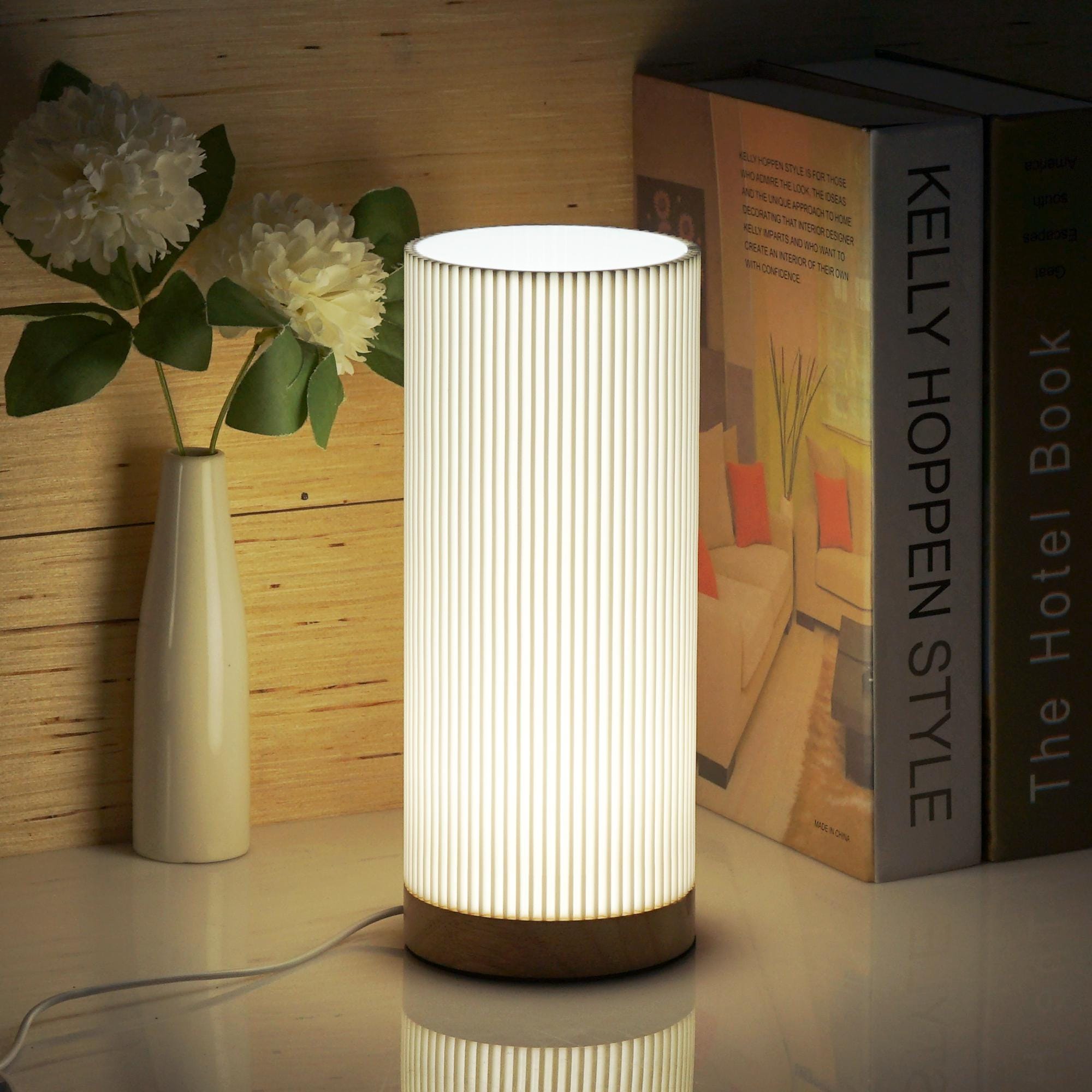 Lámpara de mesita de noche impresa en 3D, base de madera maciza, alimentación USB