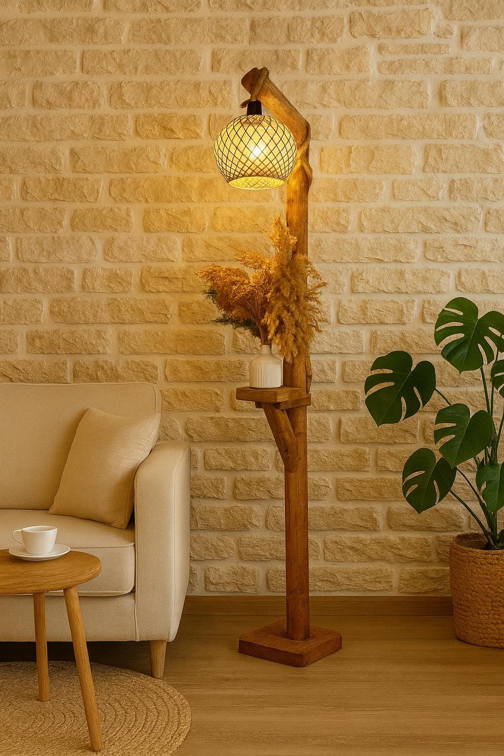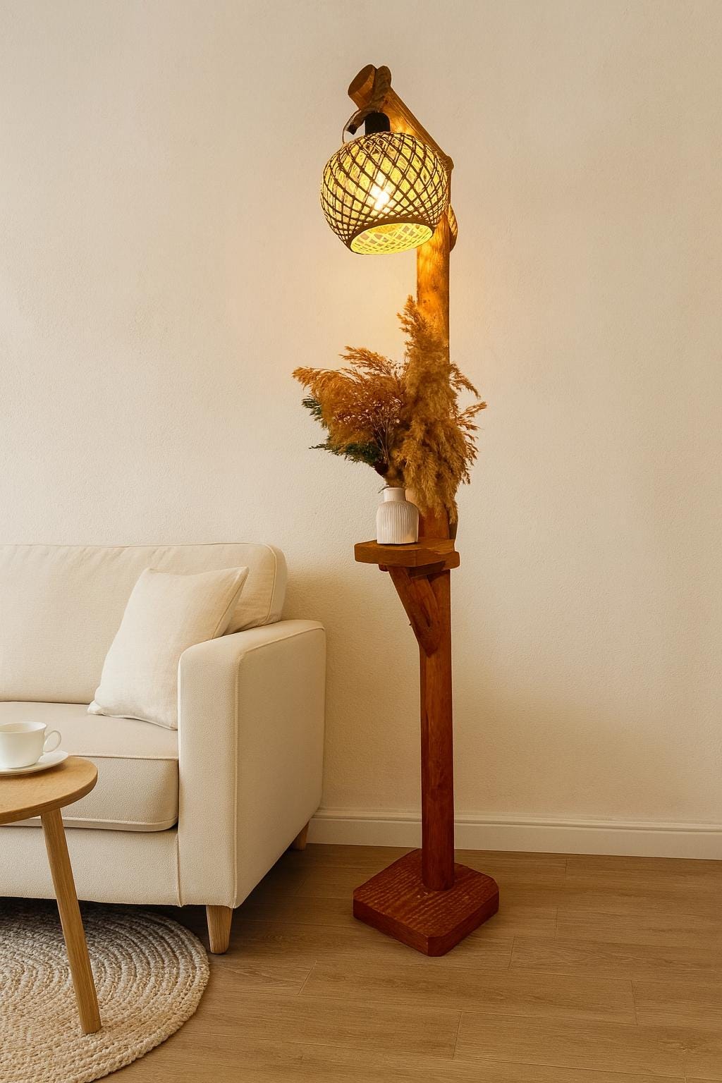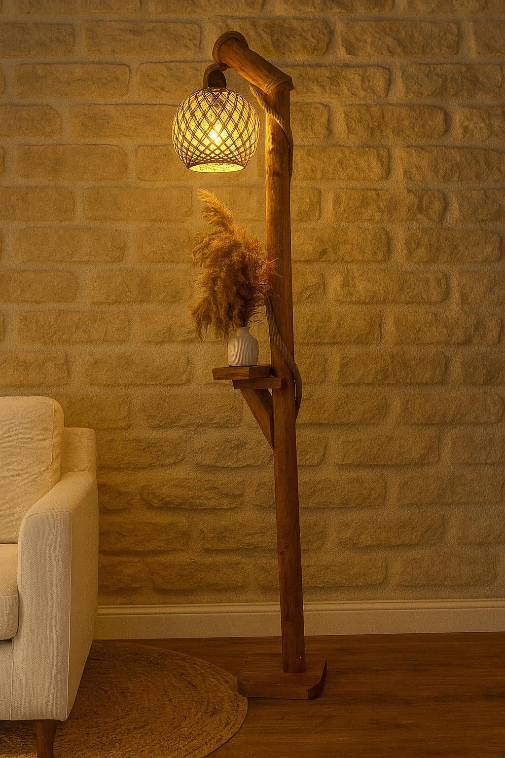 Lámpara de pie de madera, lámpara de pie rústica hecha a mano, luz de lectura para sala de estar y dormitorio, decoración natural del hogar, 140 cm / 55''