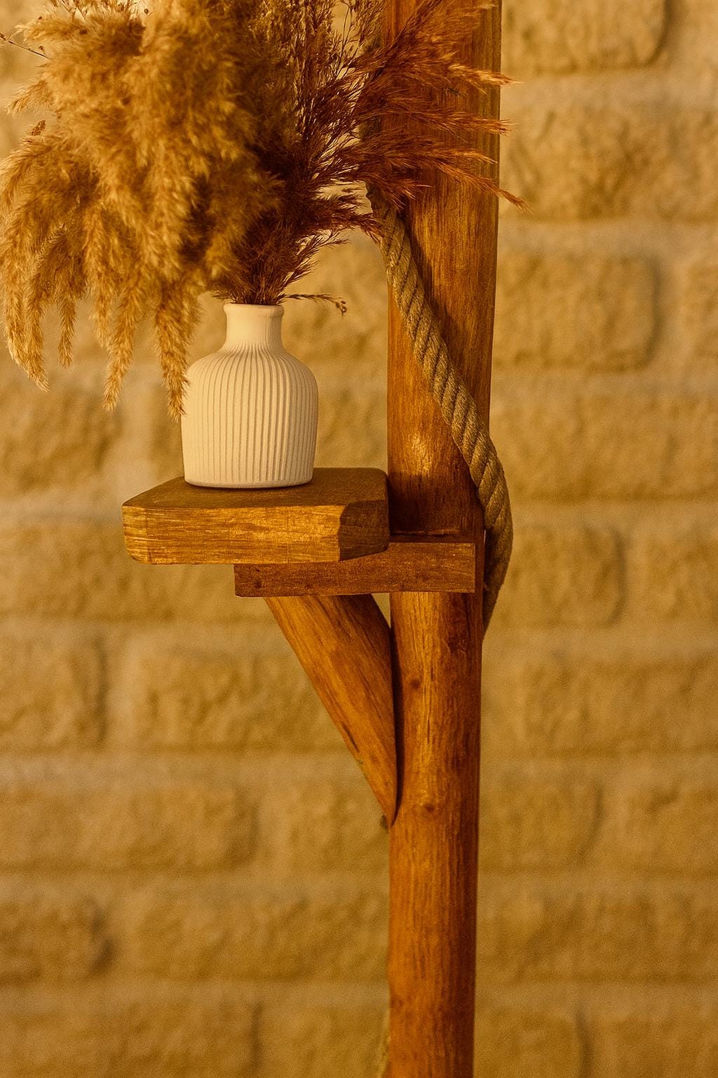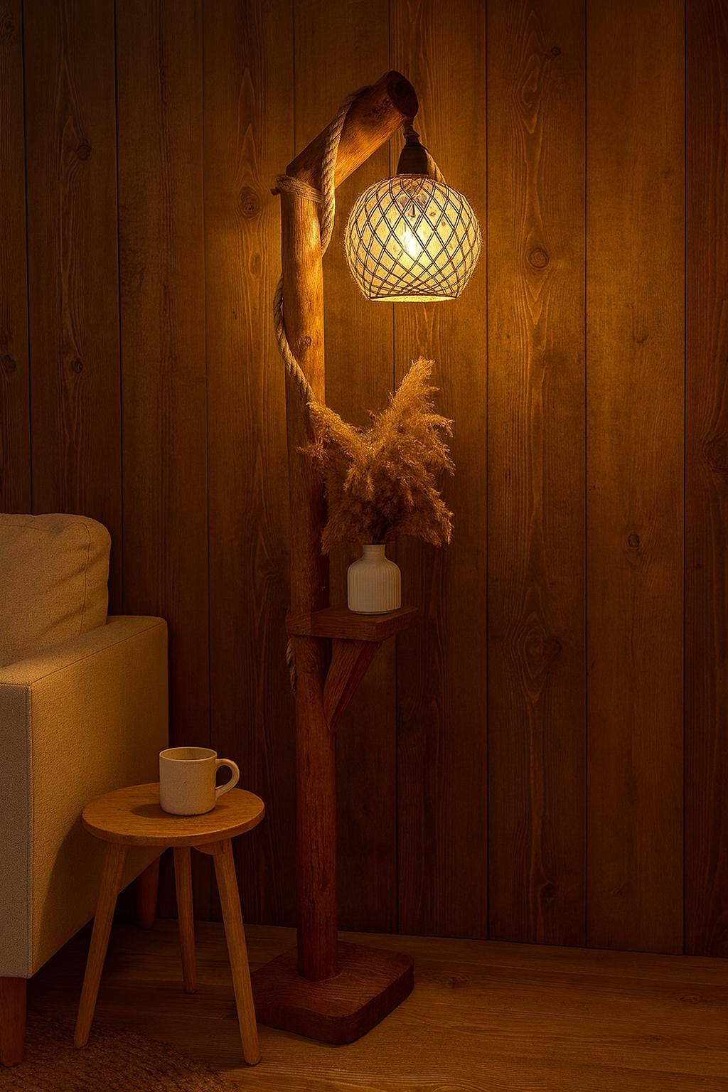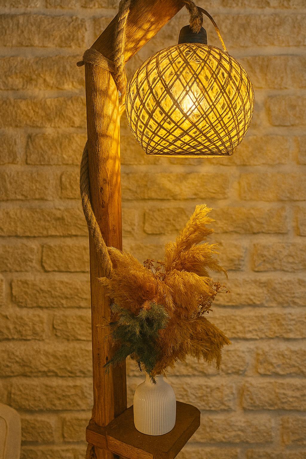 Lámpara de pie de madera, lámpara de pie rústica hecha a mano, luz de lectura para sala de estar y dormitorio, decoración natural del hogar, 140 cm / 55''