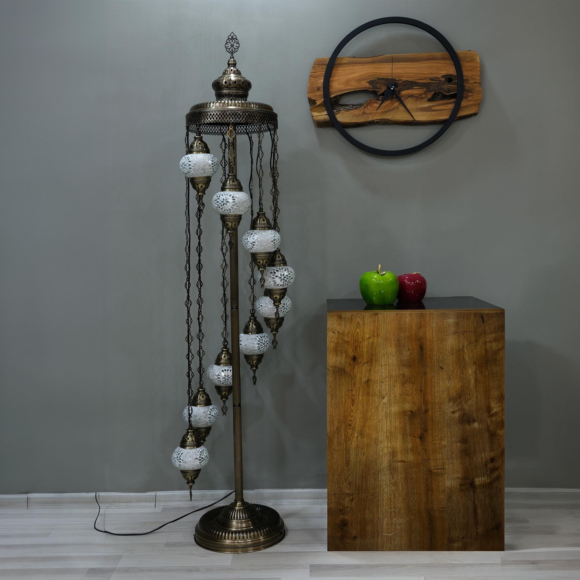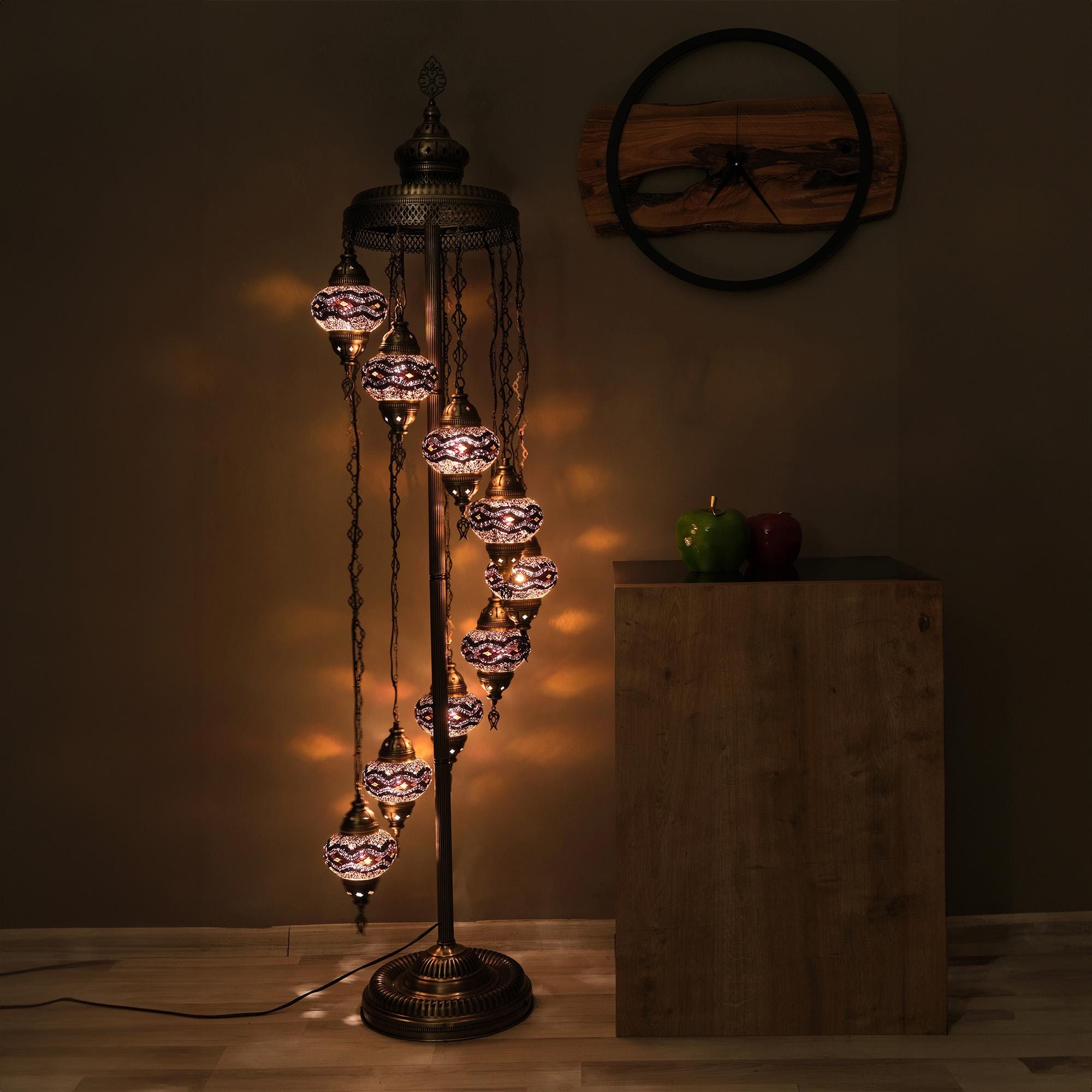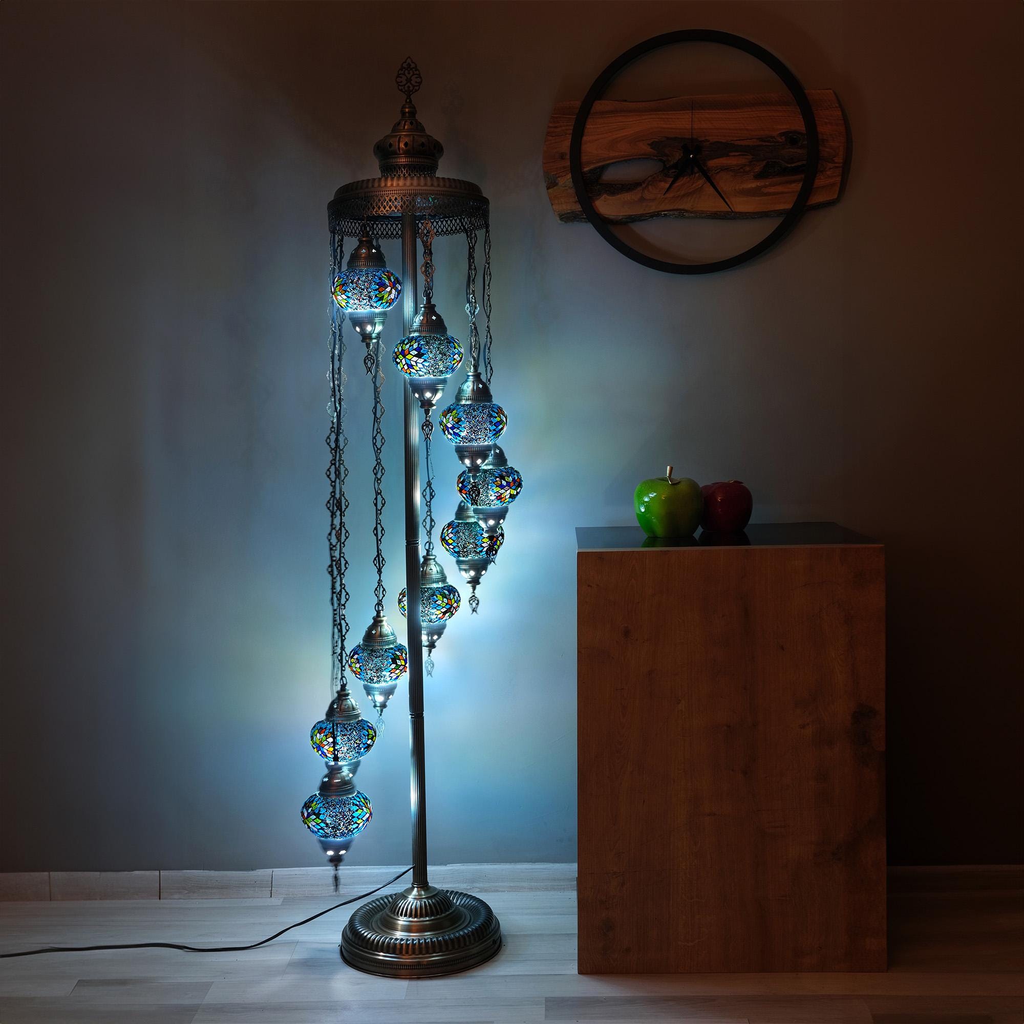 Lámpara de pie de mosaico turco personalizada: 9 esferas, 74 pulgadas, diseño colorido