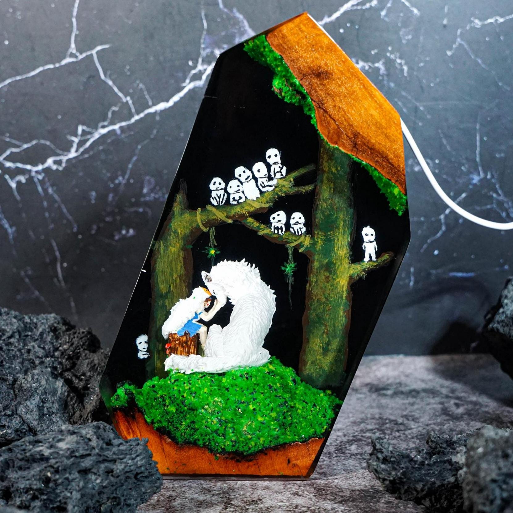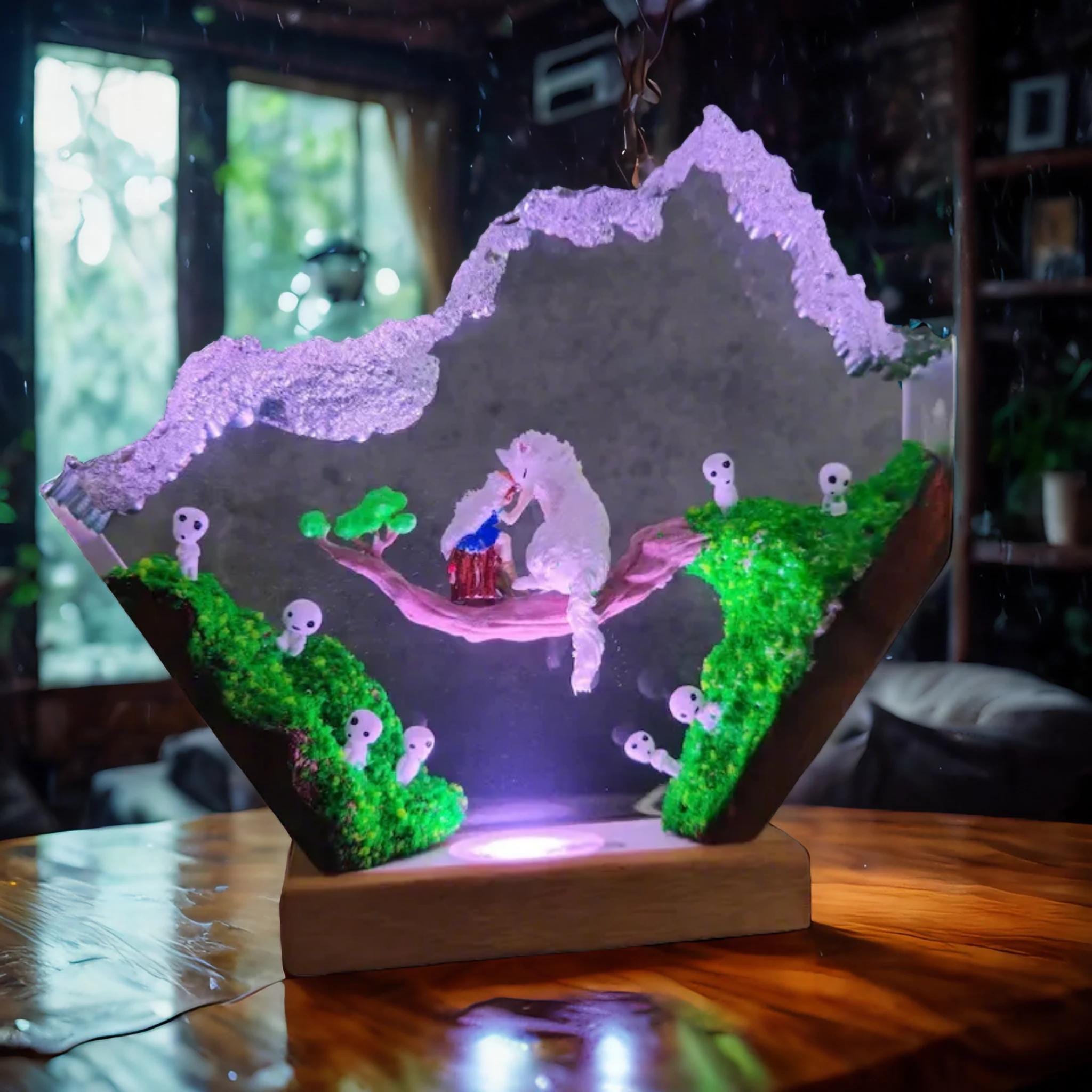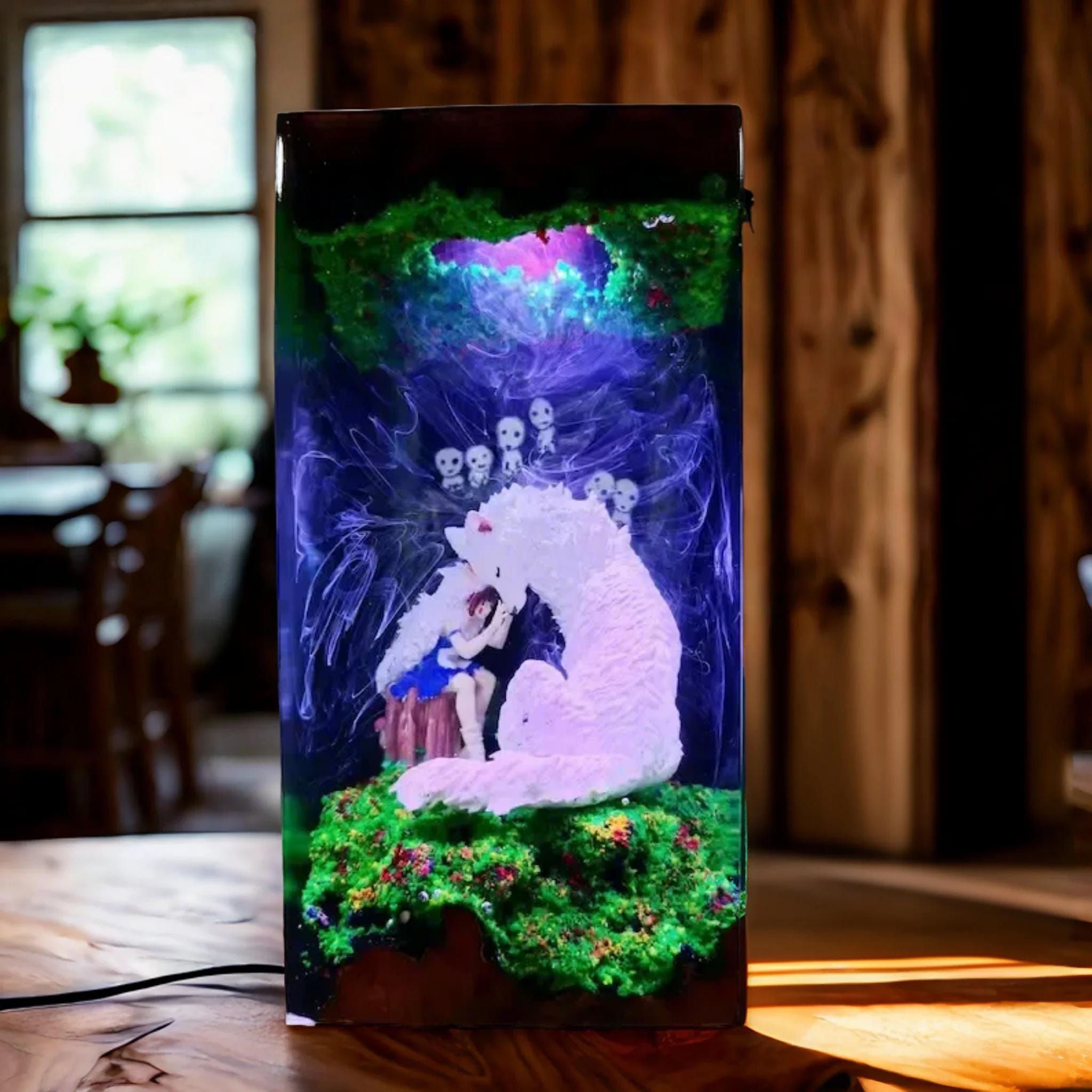 Lámpara de resina premium de la Princesa Mononoke – Luz LED para diorama Forest Spiri / Lámpara de noche inspirada en Studio Ghibli / Decoración de escritorio de anime / Regalo hecho a mano