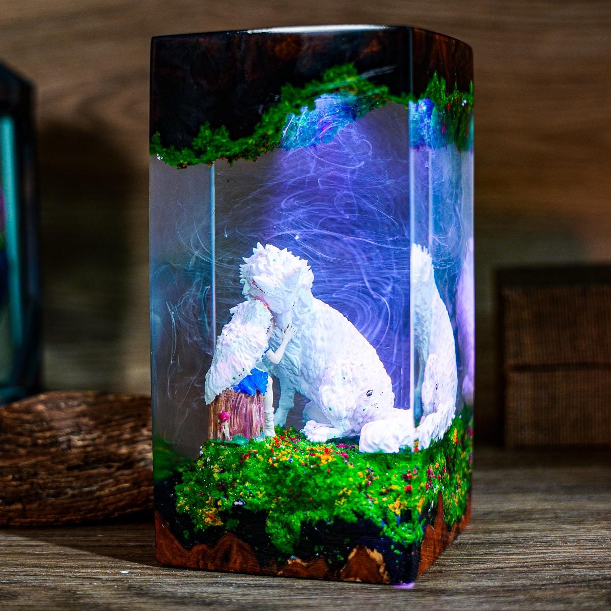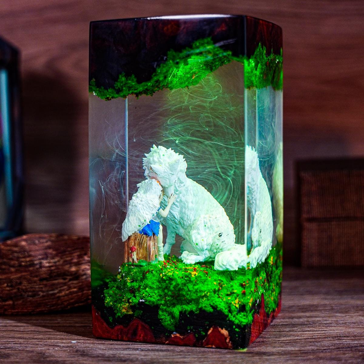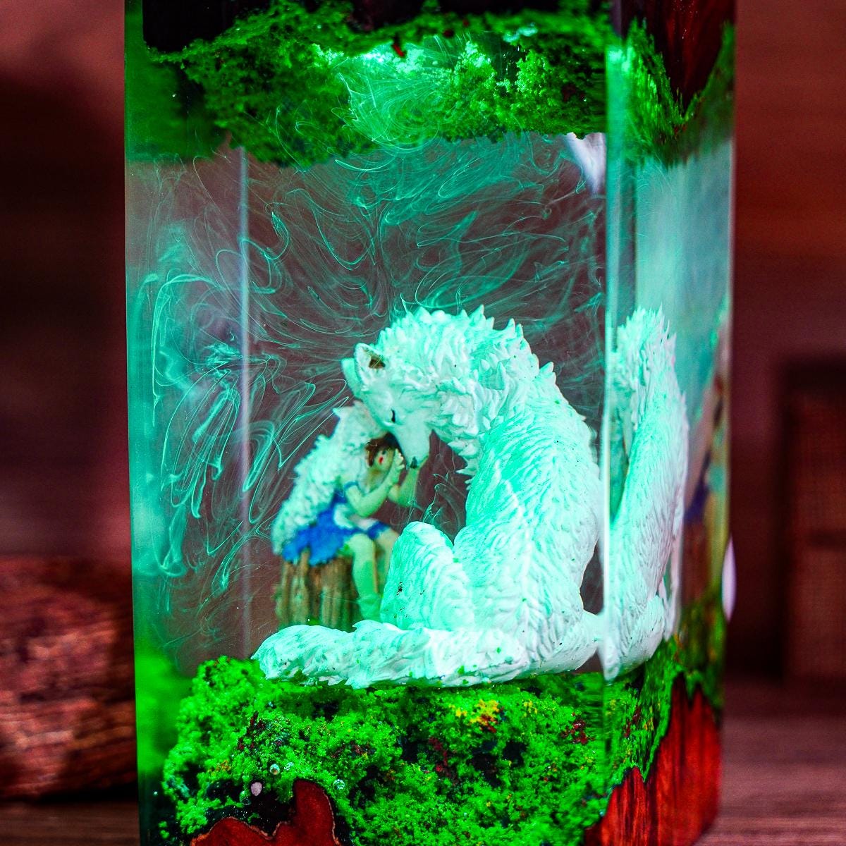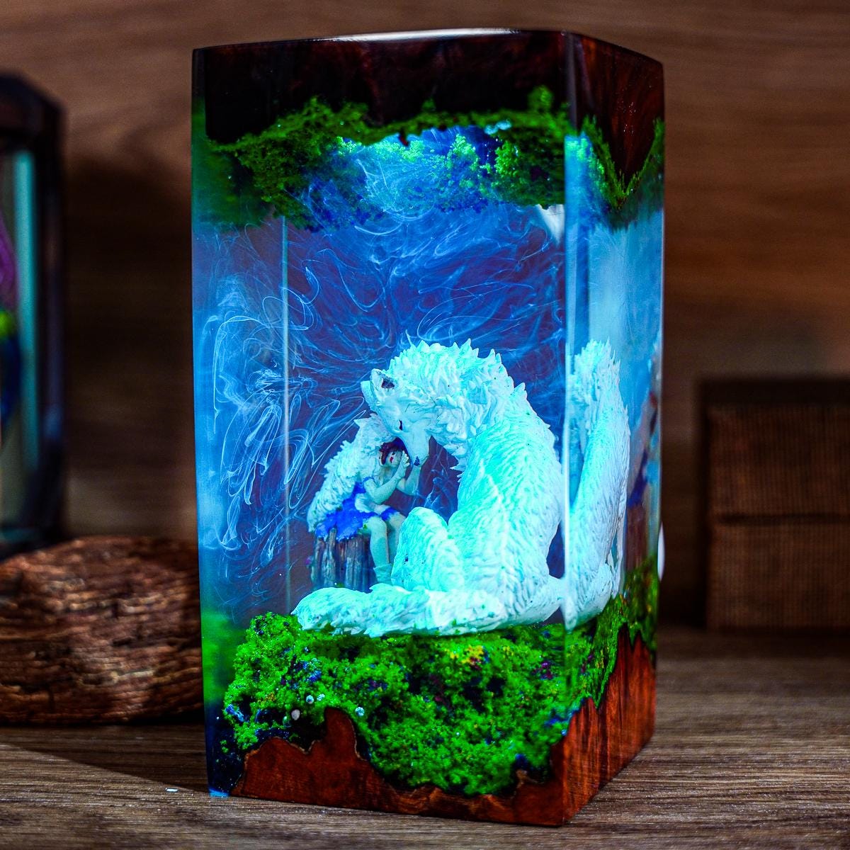 Lámpara de resina premium de la Princesa Mononoke – Luz LED para diorama Forest Spiri / Lámpara de noche inspirada en Studio Ghibli / Decoración de escritorio de anime / Regalo hecho a mano