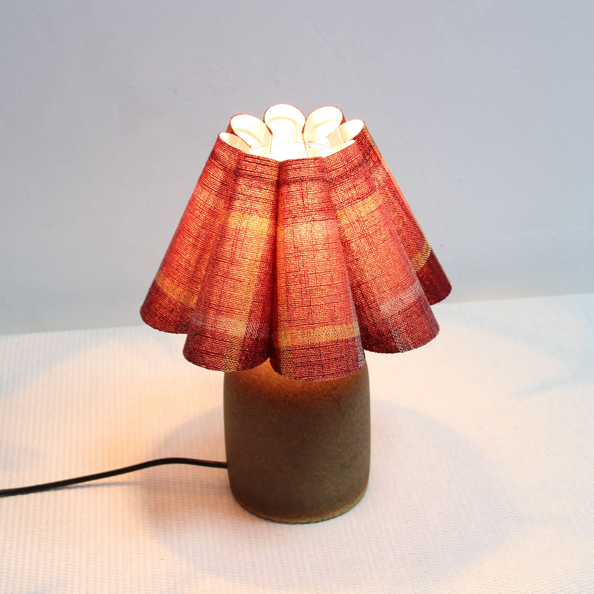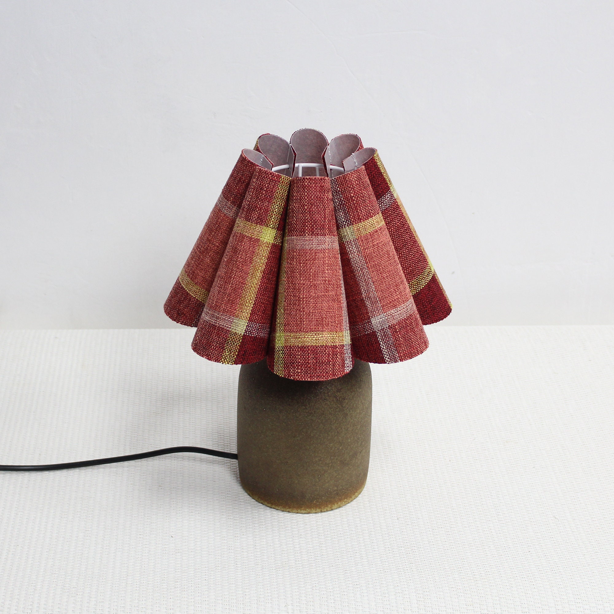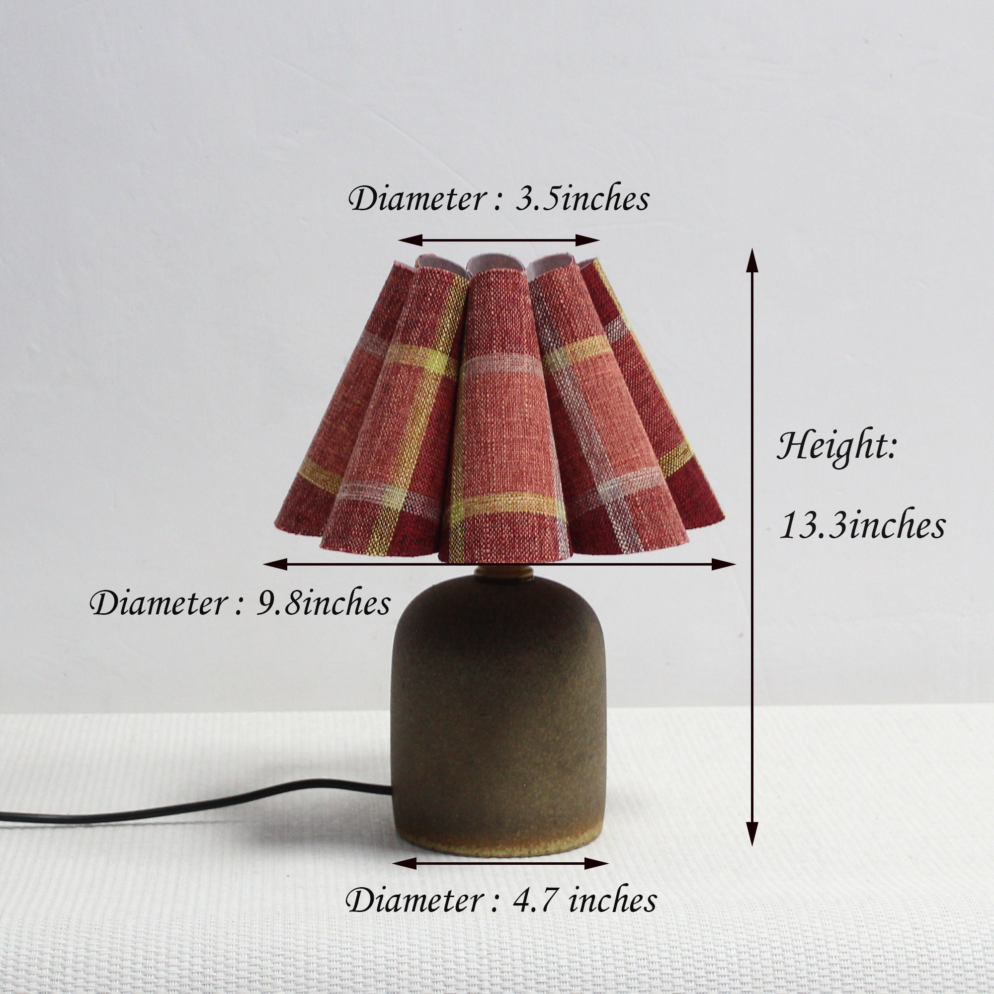 Lámpara de tela a cuadros rojos hecha a mano con base de cerámica marrón para decoración del hogar - 106#