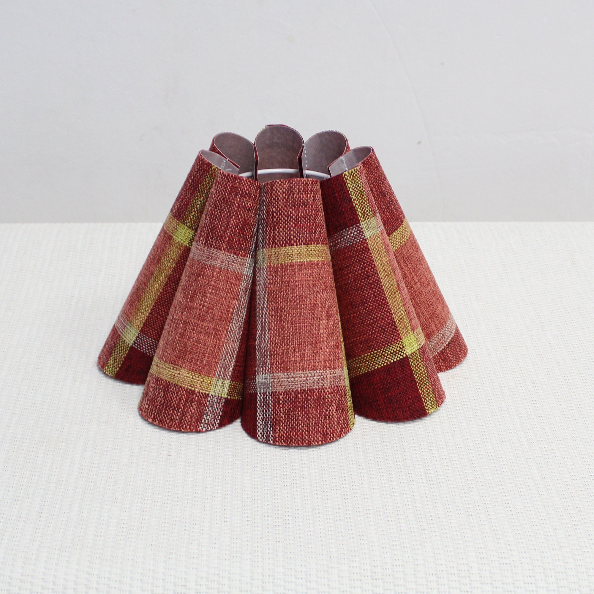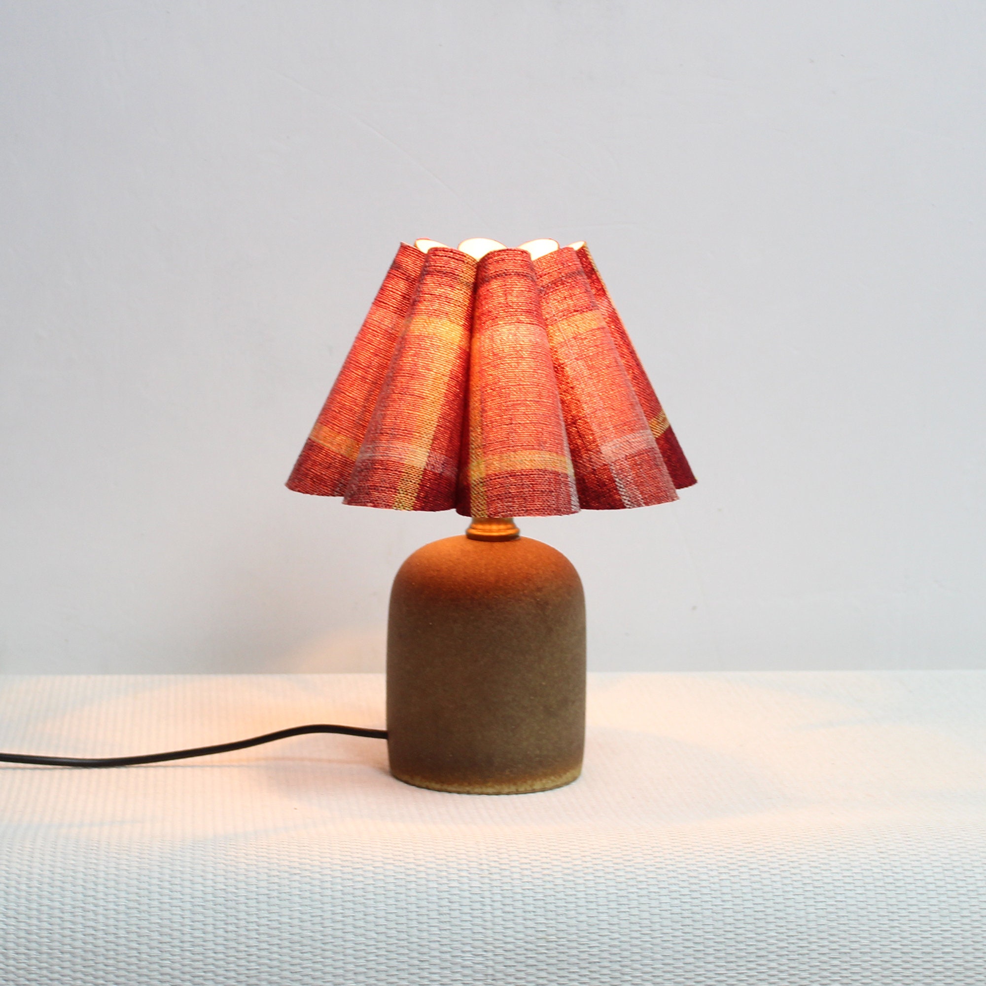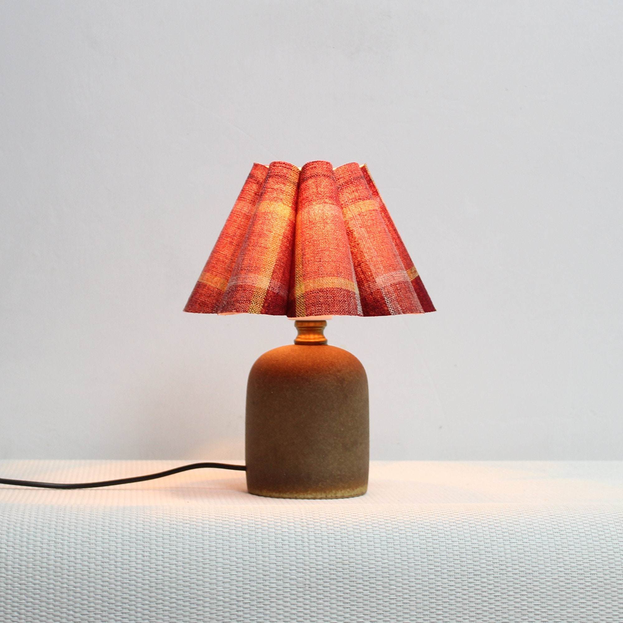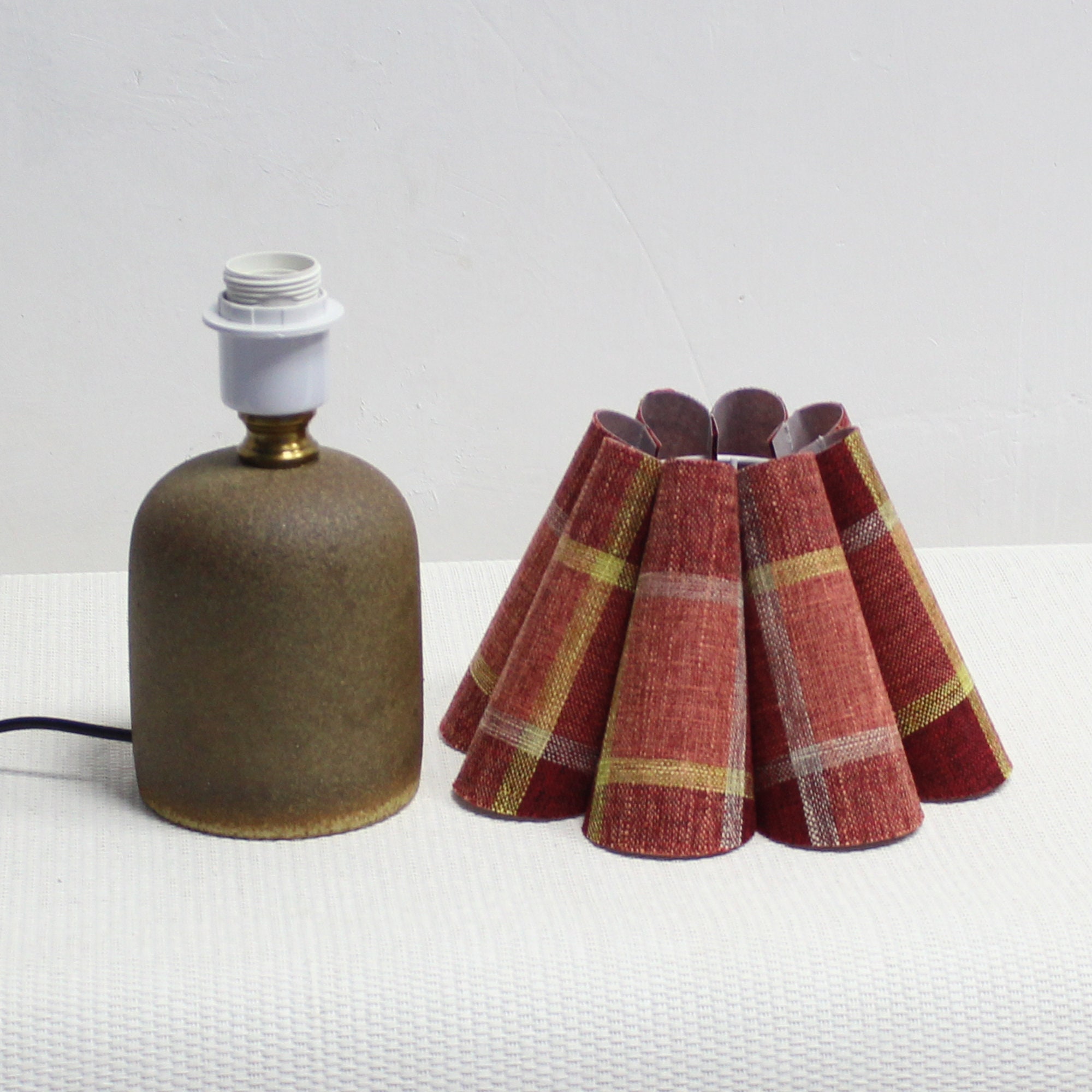 Lámpara de tela a cuadros rojos hecha a mano con base de cerámica marrón para decoración del hogar - 106#