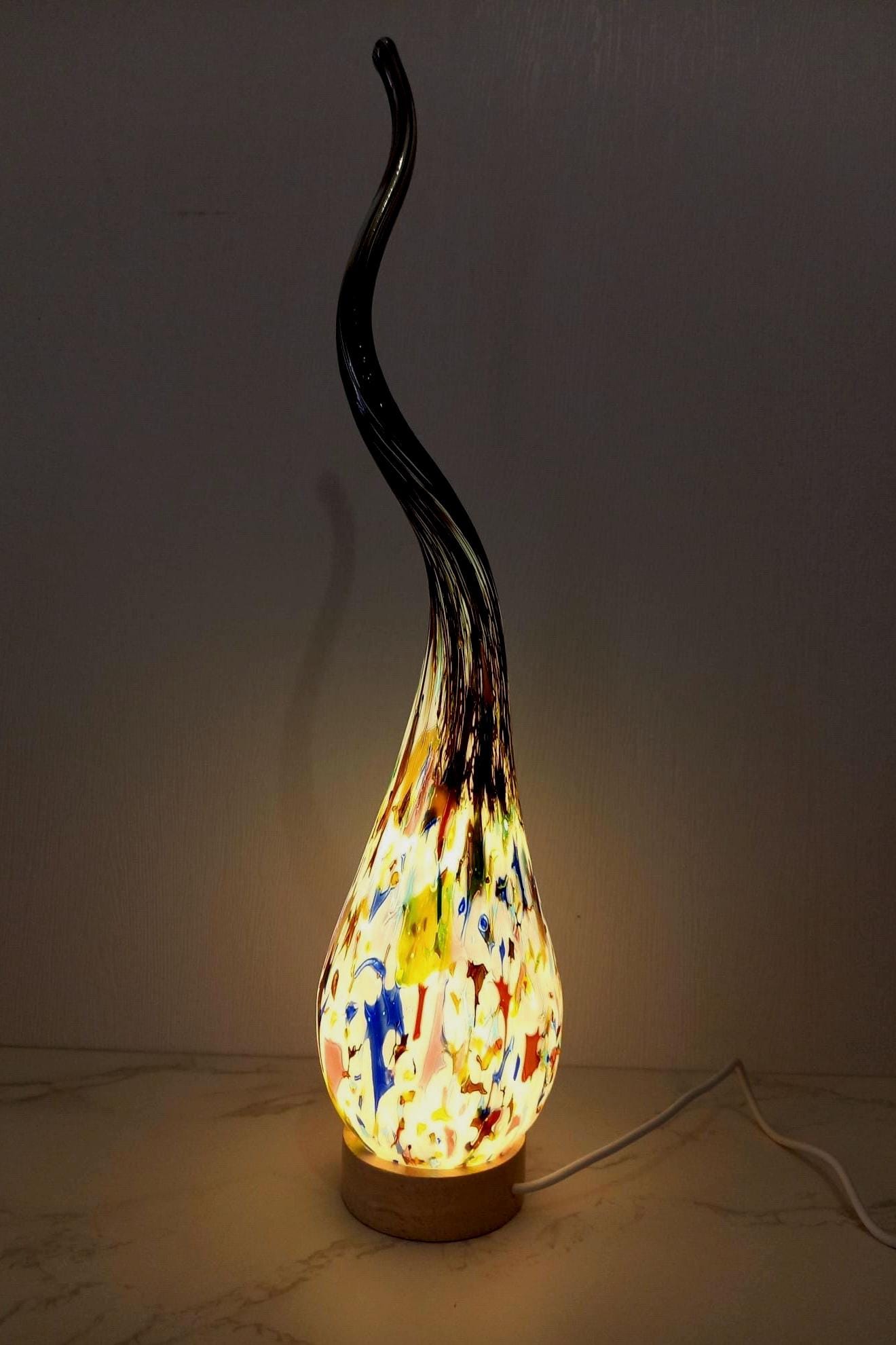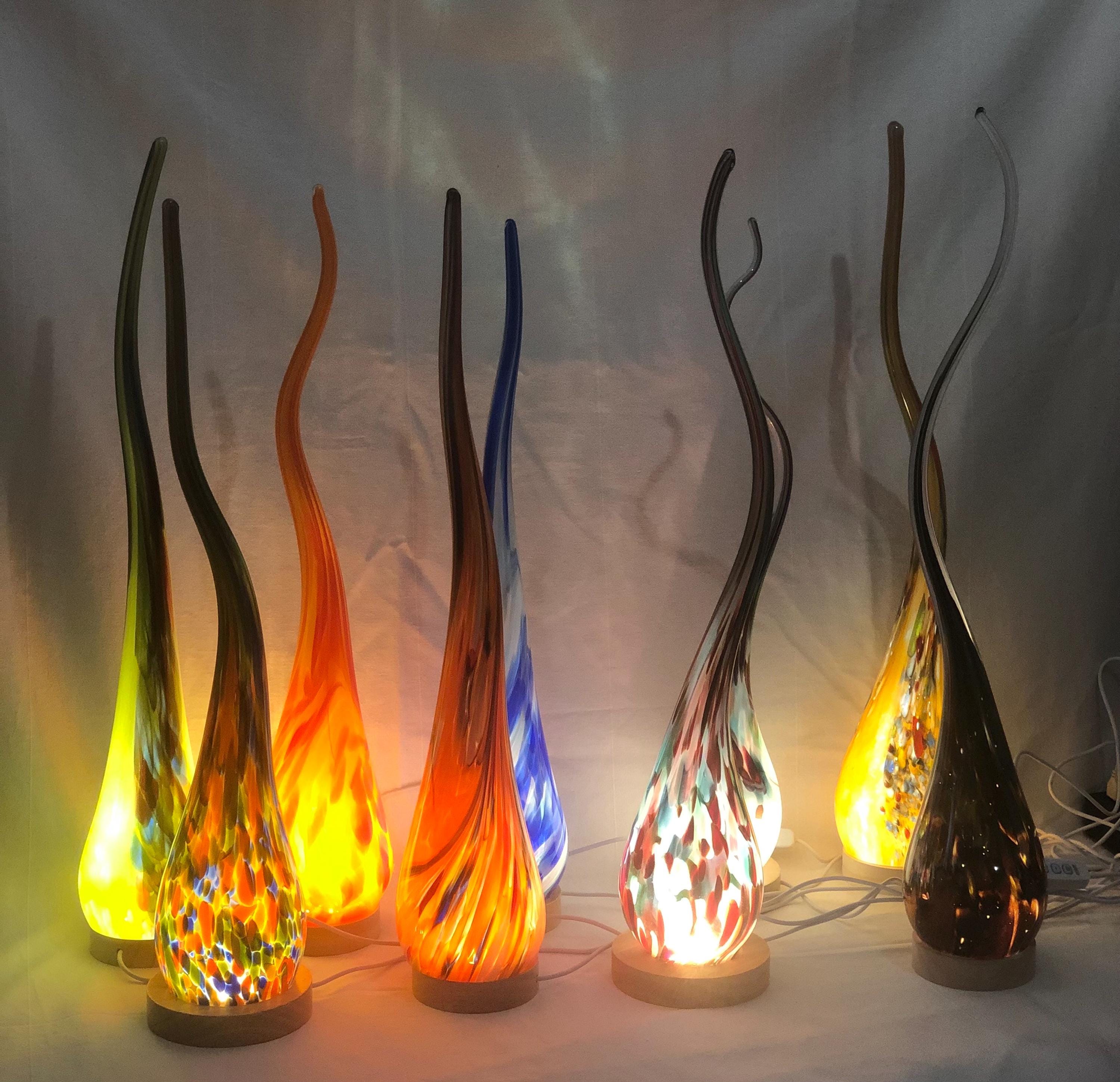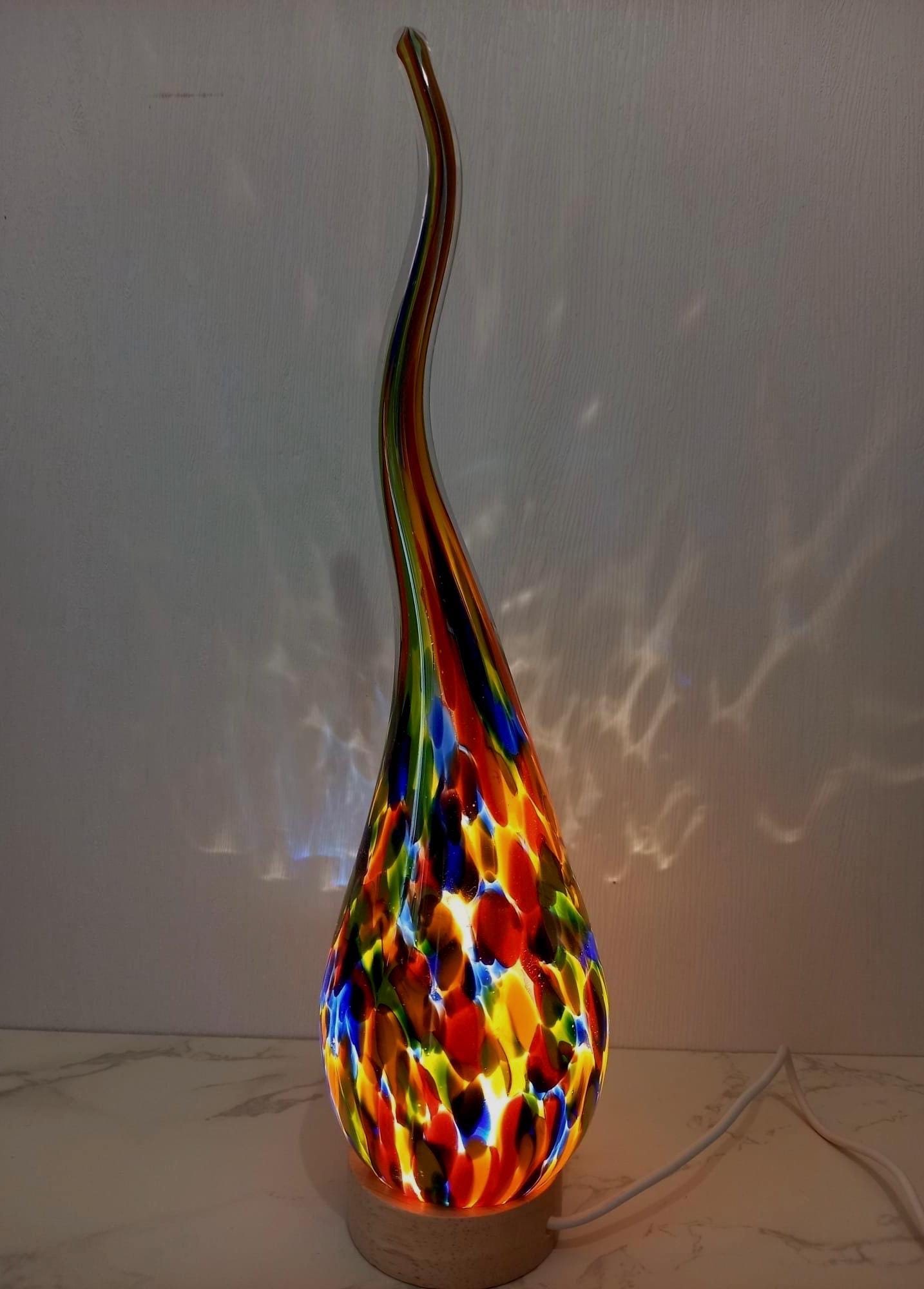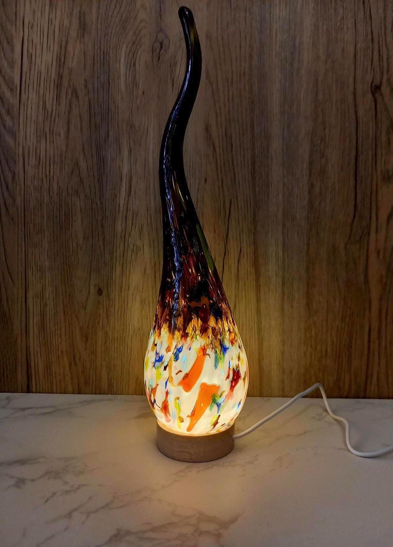 Lámpara de vidrio soplado a mano con espiral: luz ambiental colorida, vidrio artístico polaco