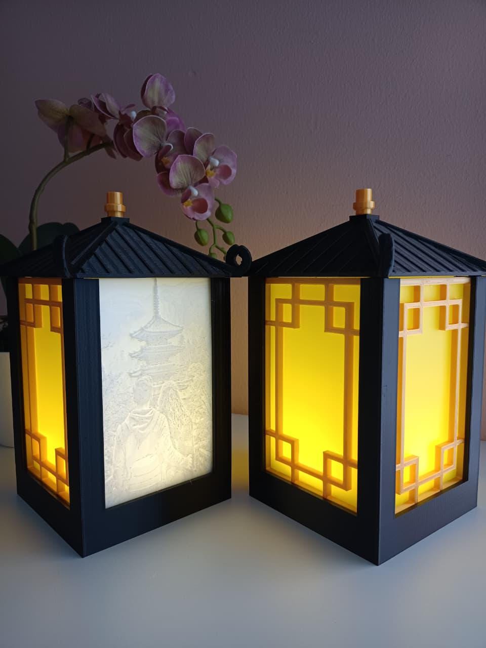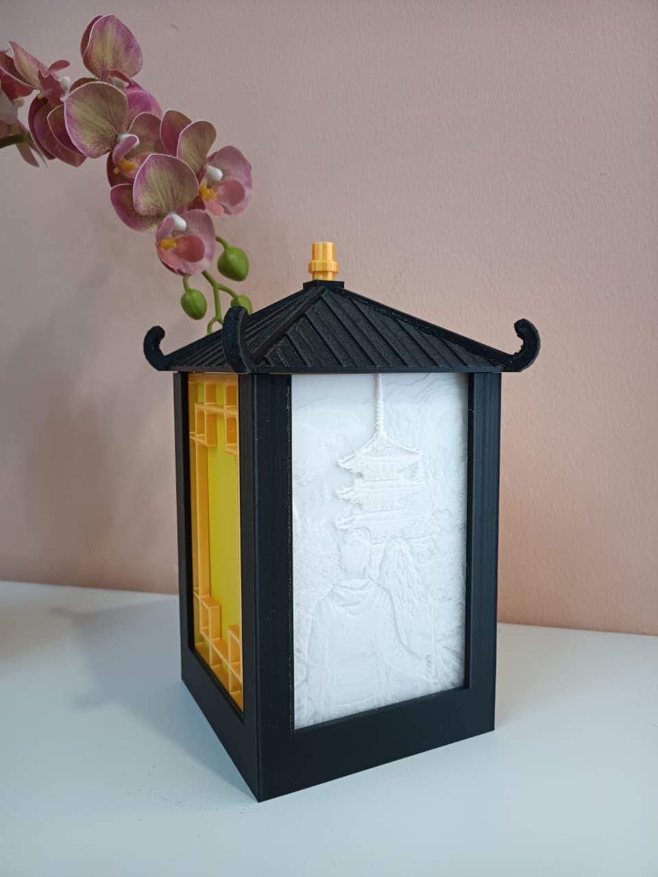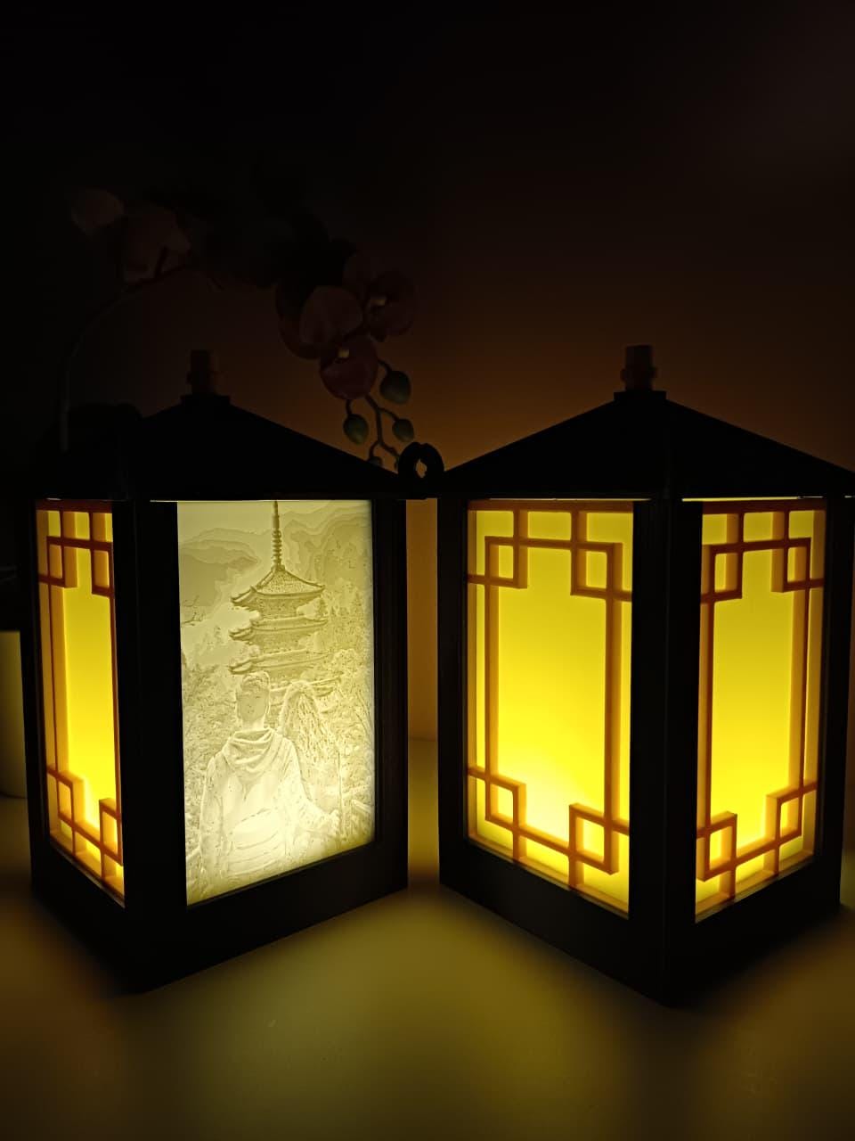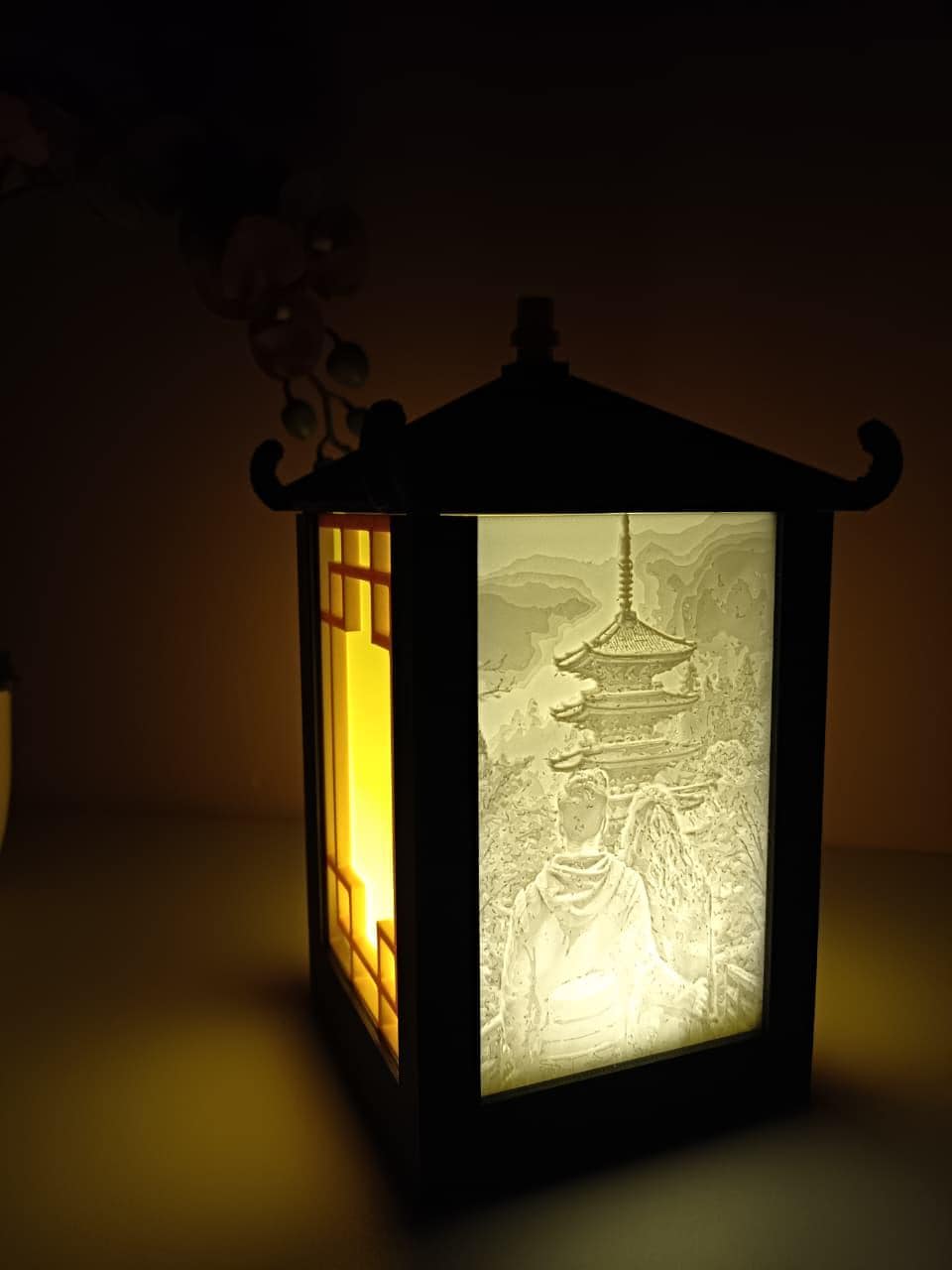 Lampara Japonesa / Lampara con foto personalizada / Lampara de escritorio / Decoración de hogar/ Impresa en 3D - Recargable por USB.