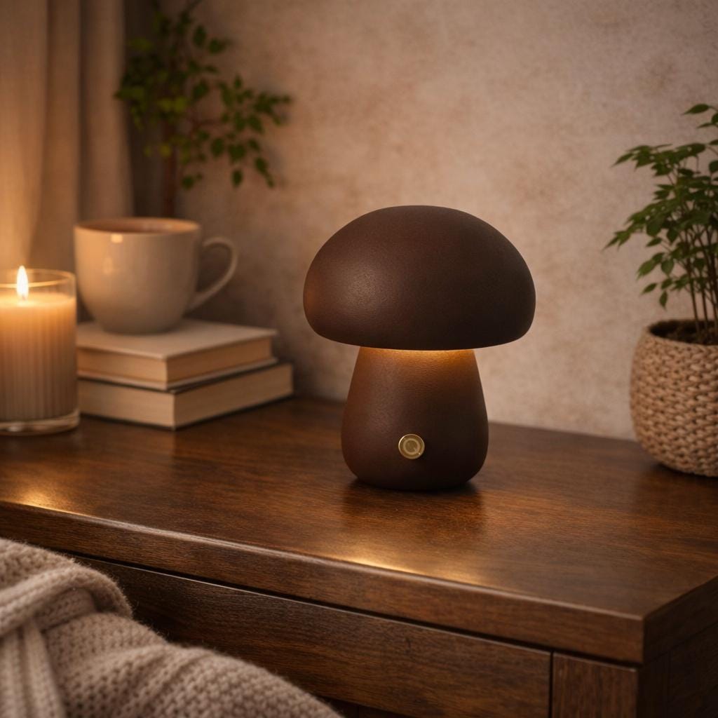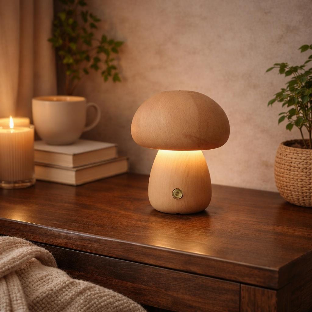 Adquiere tu Lámpara LED de madera con forma de hongo: luz nocturna recargable, iluminación ambiental cálida, decoración acogedora para el dormitorio, idea de regalo en Stock. Disponible para envío inmediato. Envío a todo México. Recibe en 5-7 días hábiles. Compra 100% segura y garantizada.