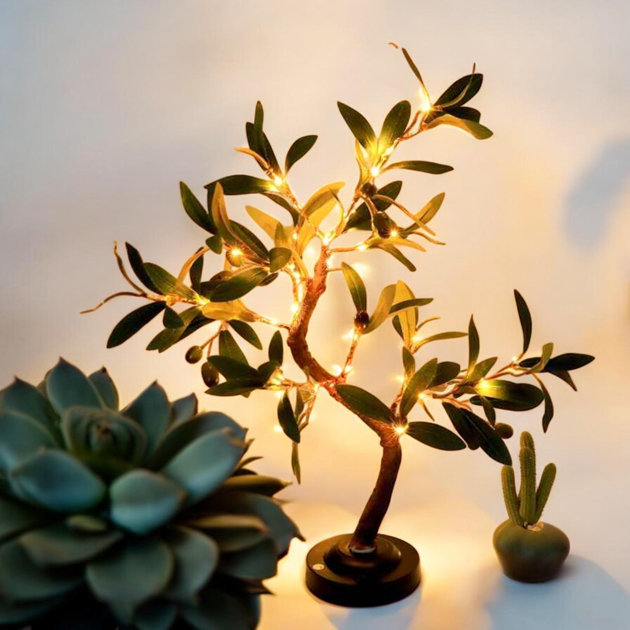 Lámpara LED de olivo / Ambiente verde, funciona con pilas