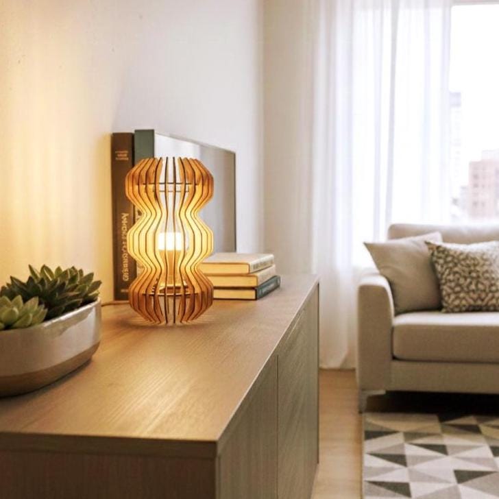 Pantalla de madera SVG / Lámpara colgante cortada a láser / Lámpara de mesa / Diseño con mínimo desperdicio / Iluminación DIY
