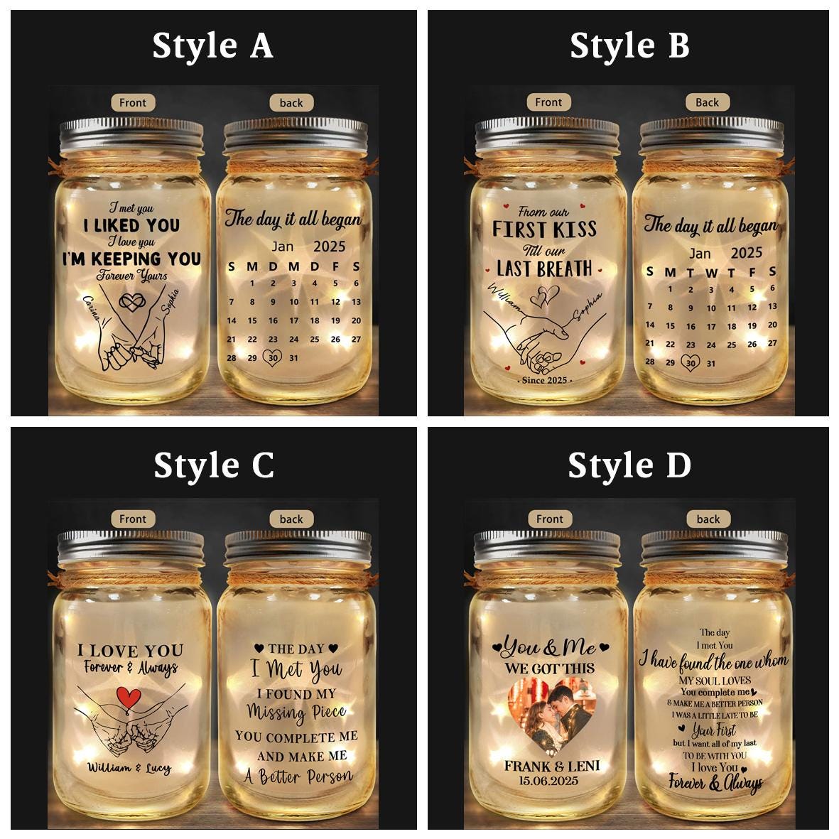 Tarro de luz personalizado para pareja, regalo de recuerdo de fecha personalizado, lámpara "Te conocí, me gustaste", decoración de aniversario, regalos románticos para San Valentín